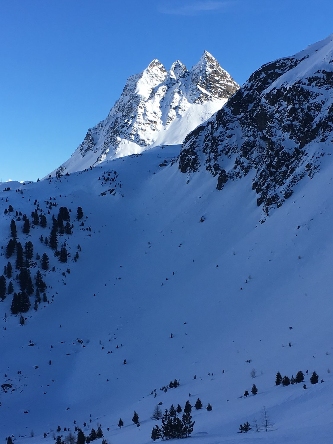 Diese Tour nur bei sicheren Verhältnissen unternehmem, steile Hänge in der Flanke Piz Palpuogna.