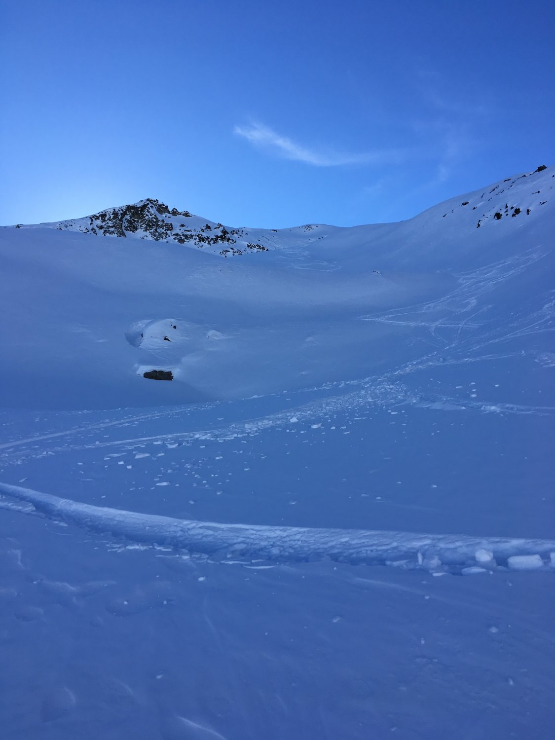 Einfach geniale Skitour in perfektem Gelände. Nach Palpuognasee etwas ruppig, aber viel Schnee und alle grösseren Steine sind eingeschneit. Sehr zu empfehlen, ab Februar auch mit Sonne im Aufstieg. Weshalb die Bergüner den Skigipfel K2 benennen ist mir ein Rätsel, vielleicht klärt mich jemand auf.