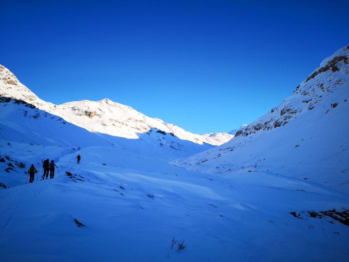 Südseitig wenig Schnee (Abfahrt Val Minor)