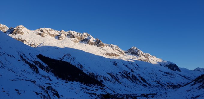 Nach kurzer Parkplatz suche ging es am 8.15 Uhr los zum Tälligrat, die Temeraturen heute recht kalt mit -9°, die Spur war immer noch gut griffig, es ging ohne Harscheisen, beim Stelliboden dann etwas Sonne, im Gipfel ziemlich Windstill mit guter Rundsicht, bei der Abfahrt immer noch mehrheitlich Pulverschnee angetroffen, aber die Hänge sind schon ziemlich verfahren.