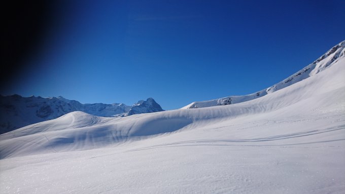 Etwas Harsch Gipfel nicht gemacht! Oben Waechten, Abfahrt unten machbar,, wenig Schnee Couloir gut oben noch Pulver im Schatten!