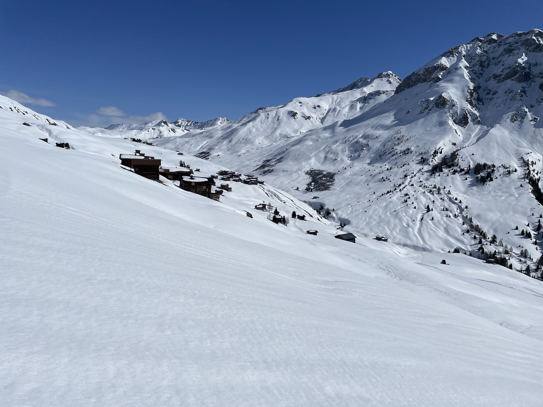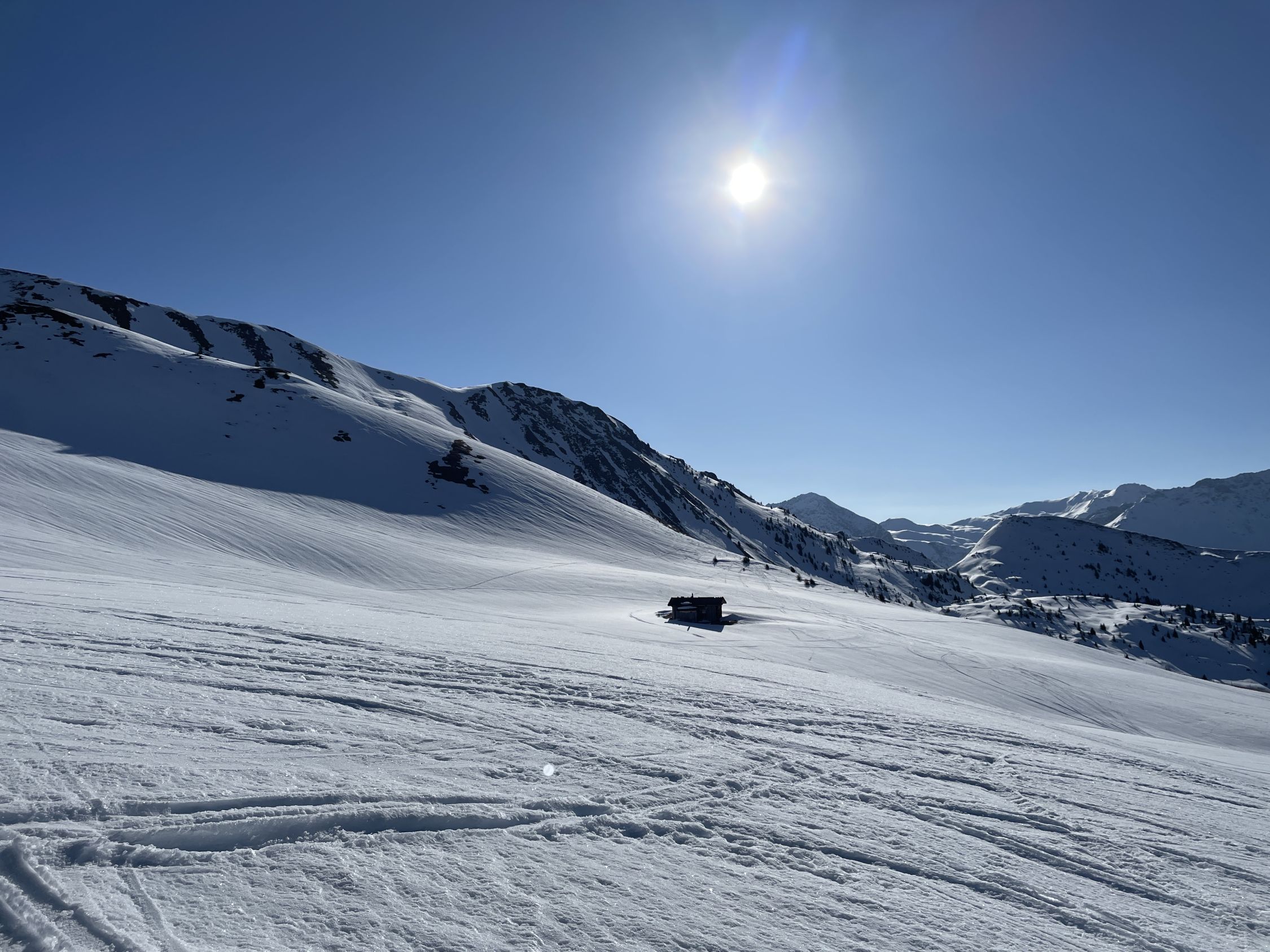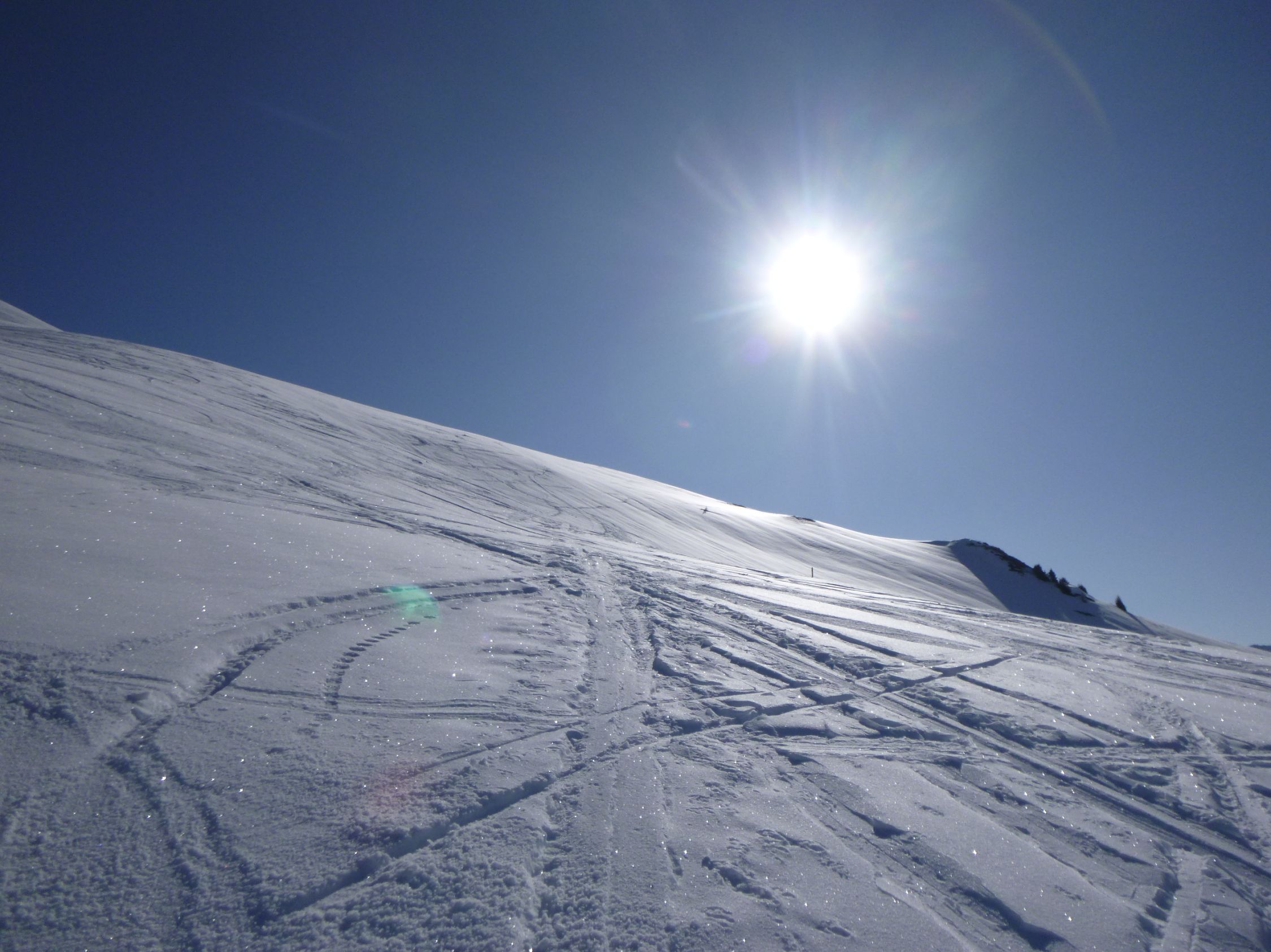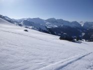 Im Aufstieg holten mich am Skihaus Pirigen 2 Skitourengänger ein. Nach mir stiegen noch 4 weitere auf. Auf der Abstiegsroute sah ich vom SO-Rücken 2 Ss-Läufer über den NO-Rücken hinab laufen.