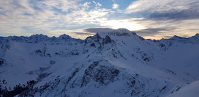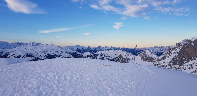 Ganzer Gipfelhang hat Pistenähnliche Bedingungen, kein Platz mehr für neue Spuren.