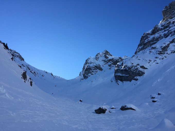 Waldweg ab PP ist mit der nötigen Vorsicht problemlos machbar. Ab Punkt 1554 sehr gute Aufstiegsspur. Bei der Abzweigung zum Rothorn und Aufstieg Spillgerte, Harscheisen montiert. Untergrund zum Teil hart mit wenig Pulver oder Windharsch (Bruchharsch - Nomenklatur). Trotz allem war der Aufstieg ein Genuss. Die Temperatur war angenehmen bei leichtem Wind. Die Abfahrt war total cool und eine Wohltat. Zum Teil Pulver, Windharsch und ab Punkt 1554 hart. Tolle Fernsicht bis zum Matterhorn.