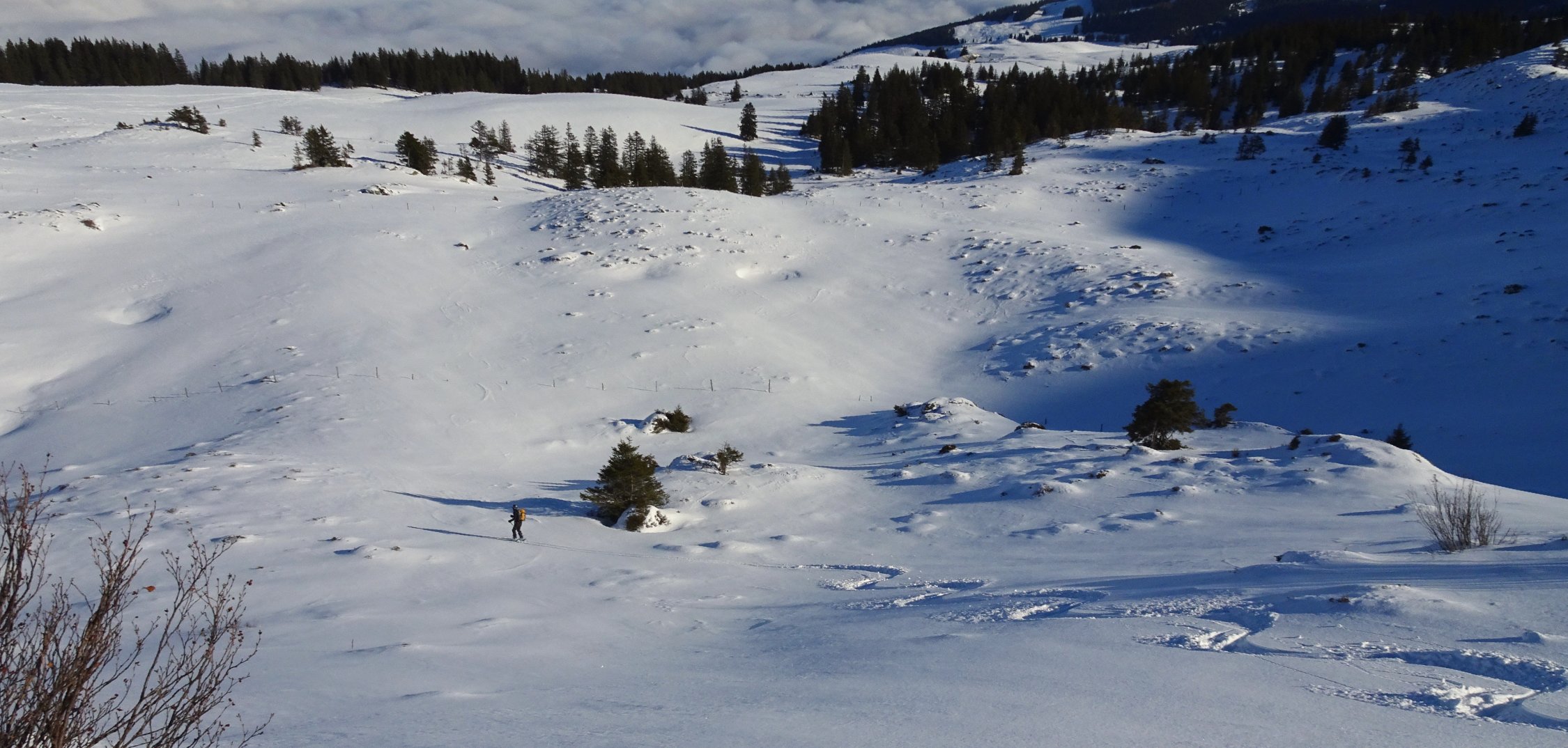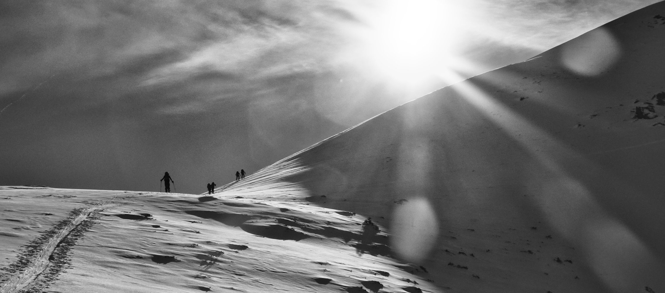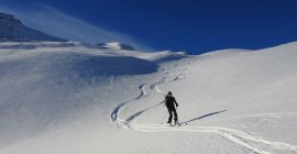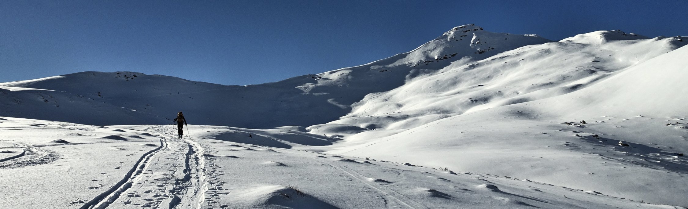 Vom Chapfensee (1050 müM) geht's bei sehr wenig Schnee hinauf nach Hochschwendi. Ab zirka 1400 Metern ist die Schneedecke ausreichend und wir gelangen schnell nach Tamons Vorsäss (1770 müM). Über die Gletti geht's hinauf zum Broch und weiter über den Grat zum Gipfel (2170 müM).