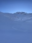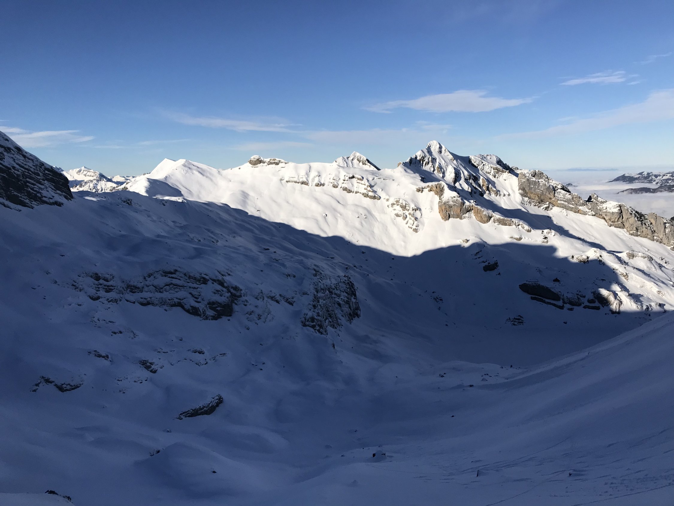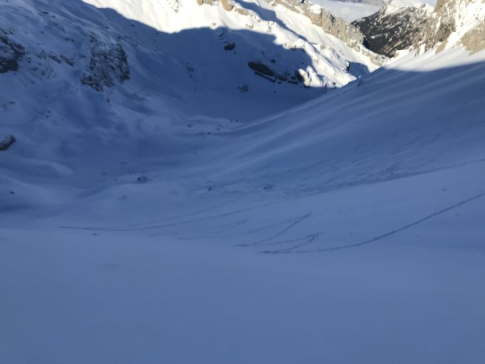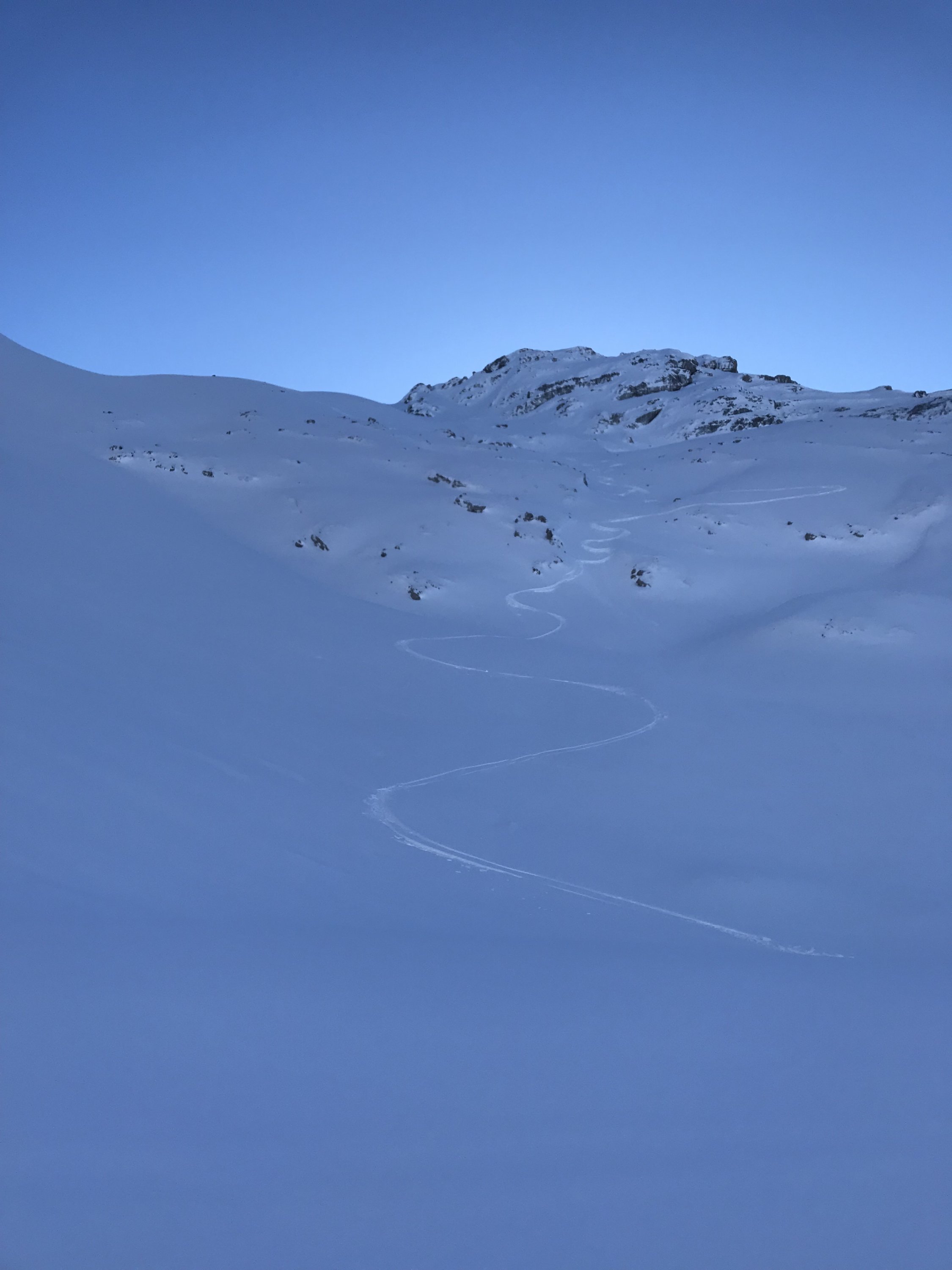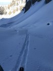 Von der Bergstation bis zum Spilauergrätli auf der ganzen Route Bruchharsch. Aufstieg ging sehr gut, nicht eisig und Harscheisen waren nicht nötig. Leichter Wind auf dem Gipfel. Abfahrt ebenfalls auf der ganzen Route Bruchharsch.