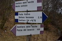 Von Belluno Veronese Vom Dorfzentrum Belluno Veronese über den Weg 678 hinauf ins Valle die Fo. Nun immer weiter bis der Steig in einer Kehre westseitig zum Südrücken des Berges führt. Nun auf dem Südrücken immer weiter hinauf bis zum Pratesel auf 1201m. Jetzt weiter hinauf und auf ca. 1300m führt ein Weg zum Südöstlichen Teil des Gipfels. Nun kurz südseitig und Weglos hinauf zum Höchsten Punkt. Der Abstieg erfolgte westseitig über Wiesen hinunter zum Passo del Cerbiolo. Nun auf Forststr. zur Malga Prezagano und Fonte della Teia. Nun weiter abwärts zum Passo del Casello. Von dort den Steig 660, auf der Tabacco Karte 657, zurück zum Ausgangspunkt.
