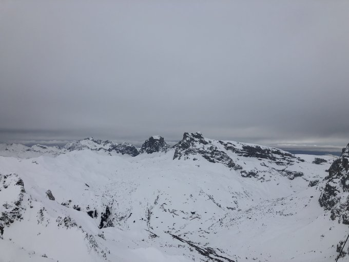 Schöner Pulver, leider nicht immer ganz so gute Sichtverhältnisse. Vom Gipfel sind wir über das Tälli Richtung Punkt 2294 gefahren und dann bis auf ca 2000 Richtung Partnunstafel abgefahren. Da nochmals Fälli montiert und auf das Spitzenbüel (2193m) aufgestiegen. Von da direkt über die Nord-West Hänge hinuntern zum Weg zurück zum Parkplatz nach Litzirüti.