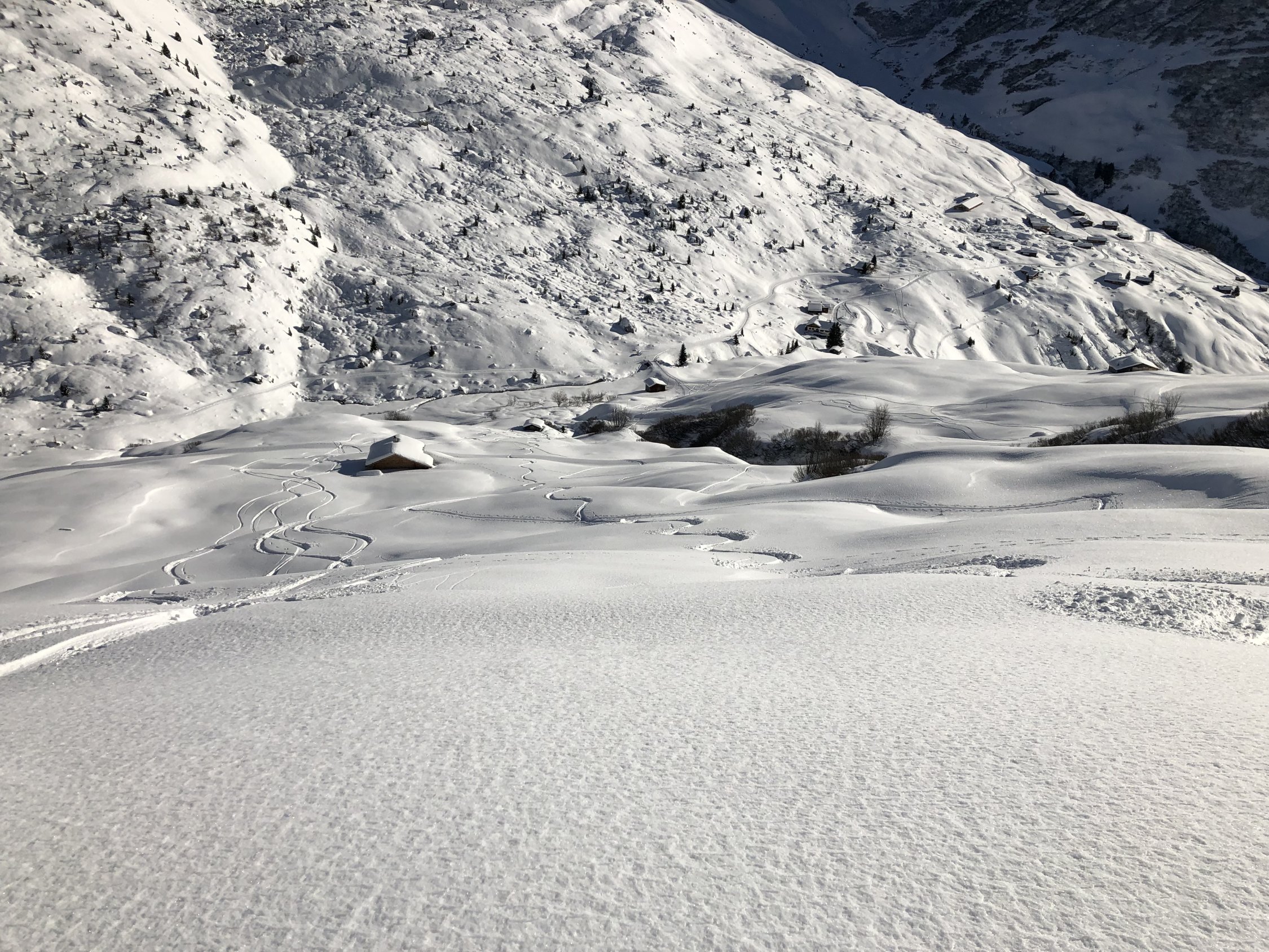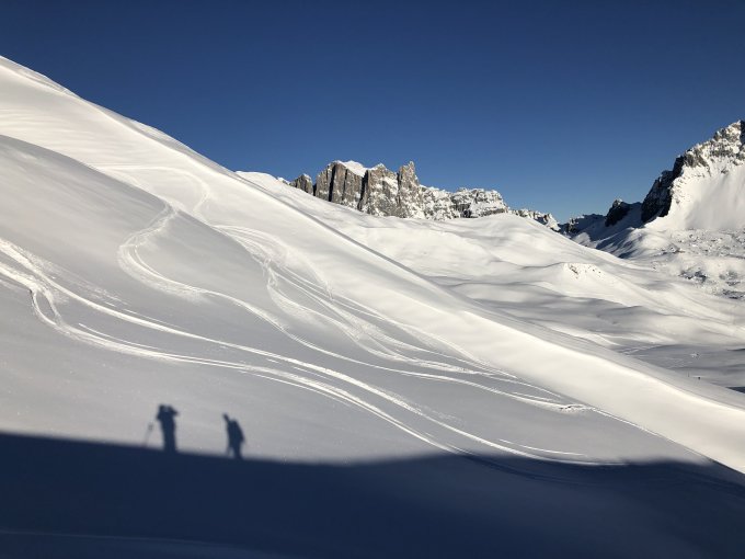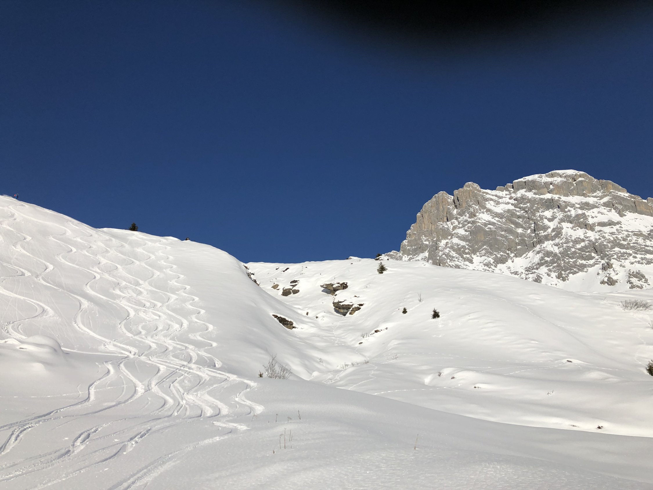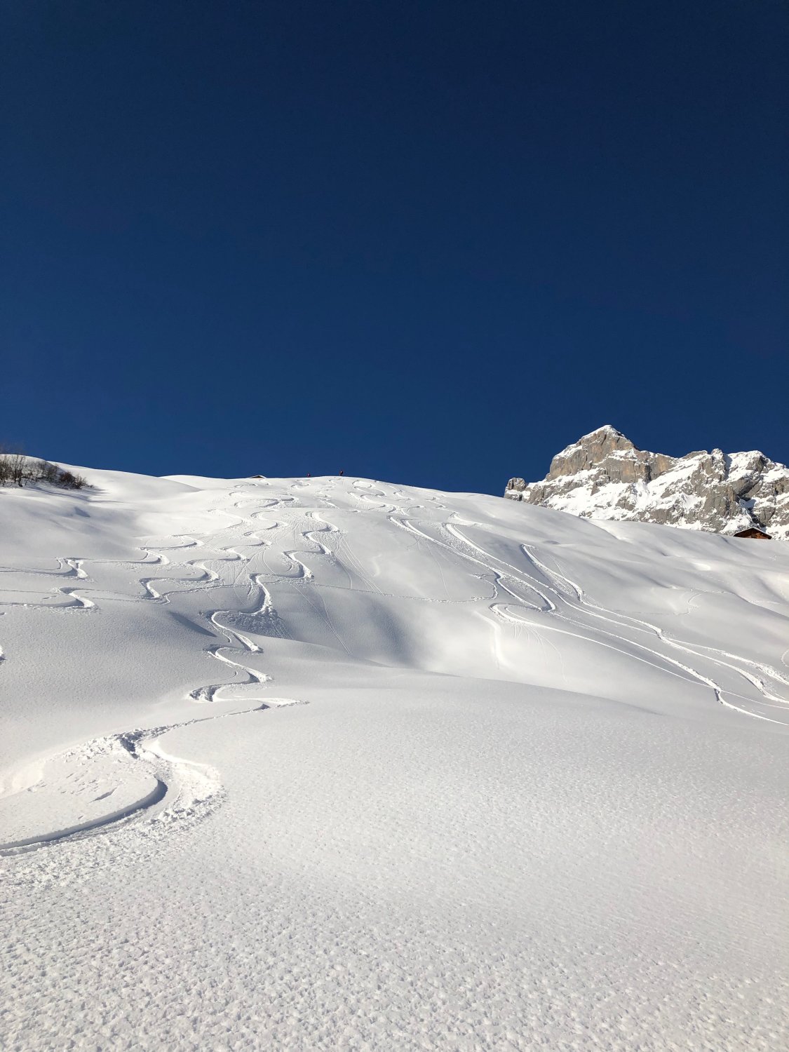 Perfekter Tag, perfekter Pulver und immer vor dem grossen Trubel auf den Gipfeln. Die Abfahrt vom Brunnenegg nach Partnun war dan wirklich perfekt mit sehr wenig Leuten/Spuren.