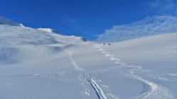 5 bis 20cm Neuschnee ab Vermol mit anfänglich knapper Unterlage. Ab 1600 müM bis zur Waldgrenze genügend Schnee und dann teilweise abgeblasen oder Triebschnee. Zum Gipfel zu Fuss auf hartem Altschnee. Auf dem Gipfel saukalt ;) und schwacher Nordwind.