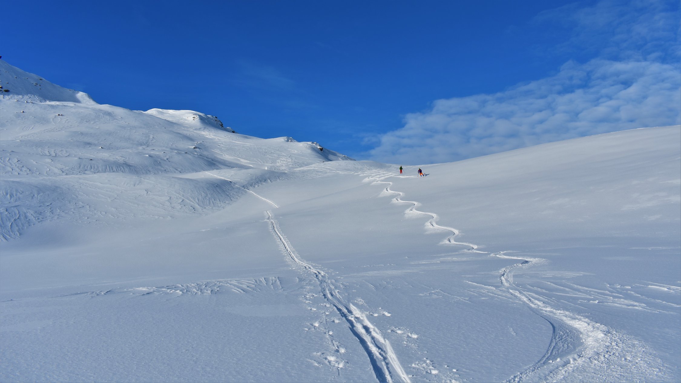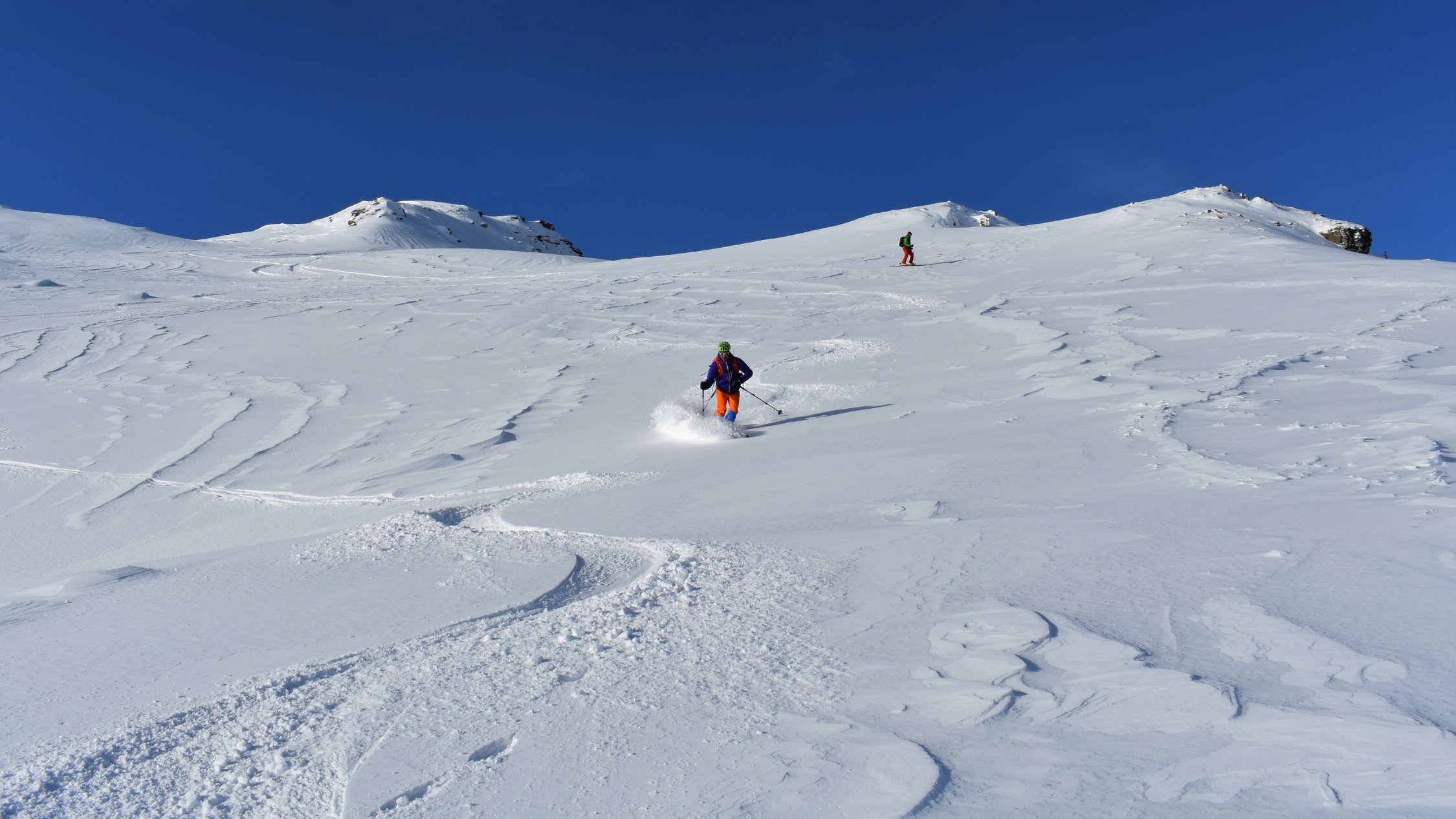In der Abfahrt Firn, Hartschnee und Pulverschnee