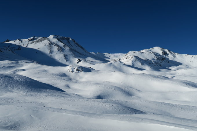 Wohl irgendetwas zwischen "machbar" und "gut". Etwas mehr Schnee würde nicht schaden. Bei guter Routenwahl hat man am Ginalshorn und Altstafelhorn dennoch keine Probleme mit der Schneemenge. Im gesamten Gebiet ist die Schneedecke stark windgeprägt. Hänge sind je nach Expo z.T. massiv abgeblasen. Der Schnee ist meist hart und recht gut tragend, manchmal winderodiert unregelmässig. Hie und da ist es auch etwas weich. Weder im Aufstieg noch in der Abfahrt der Renner. Es ging alles ohne Harscheisen, aber nicht ganz ohne punktuelles minimales Gemorzge. In der Abfahrt meist gut fahrbar. Vor allem wenn man die glatteren Stellen sucht (dort pistenarig). Sonst hie und da etwas ruppig. Freudenschreie kommen keine auf, Spass gemacht hat es dennoch. Schöne Tour mit tollen Ausblicken!