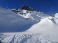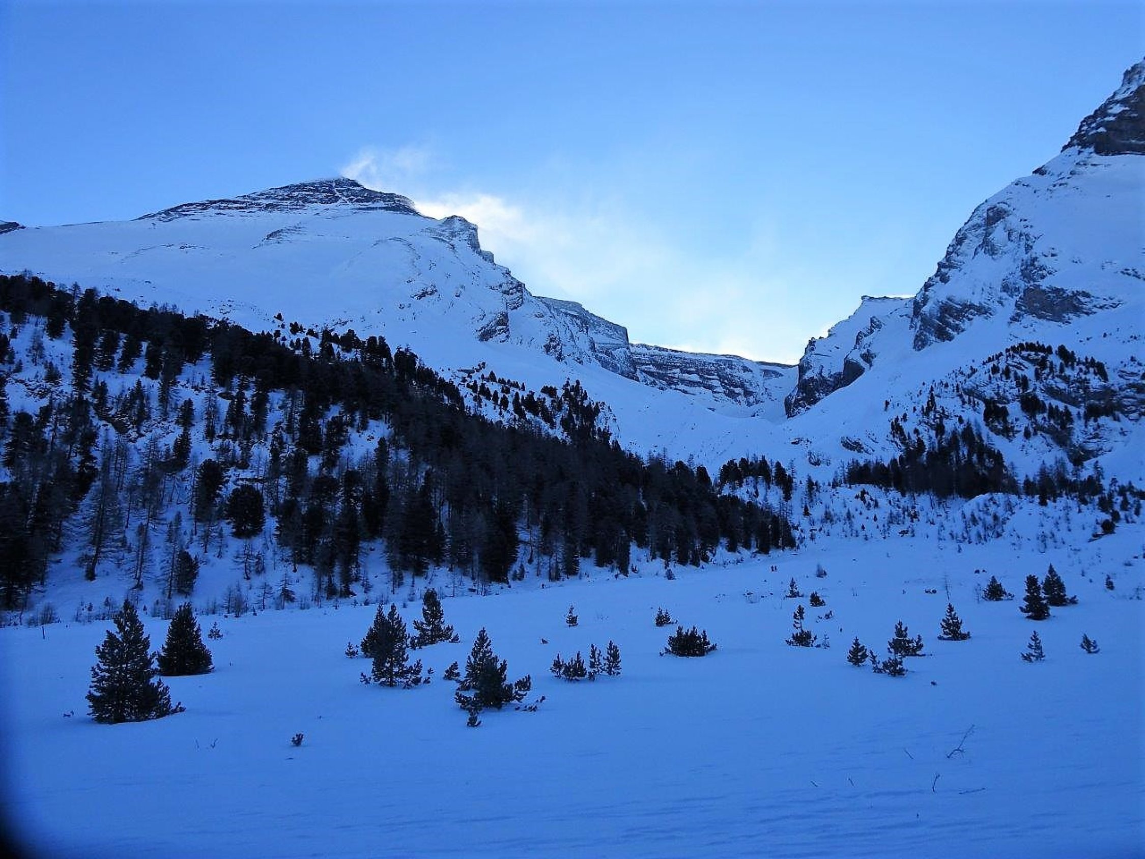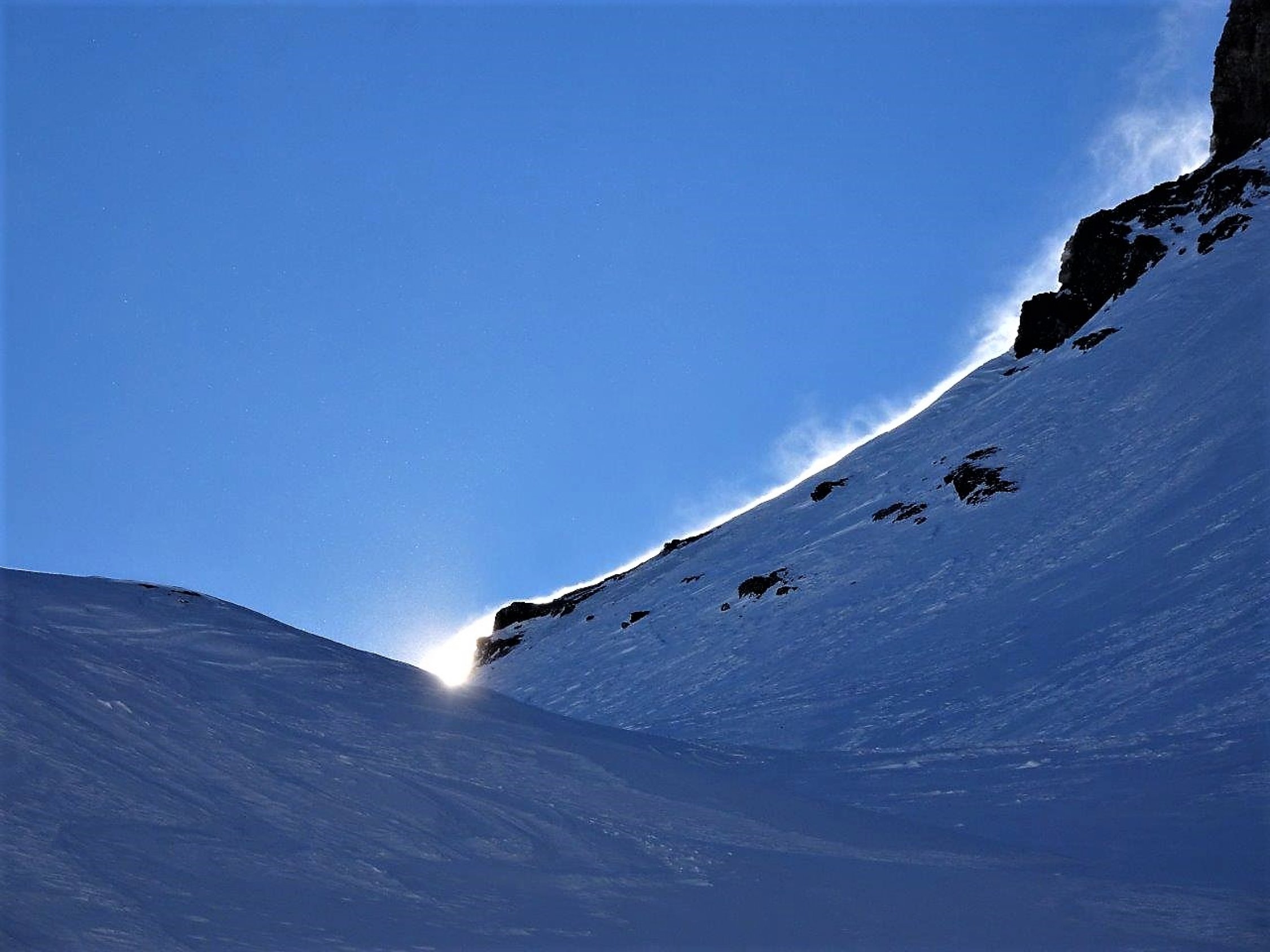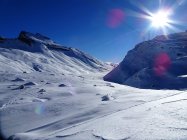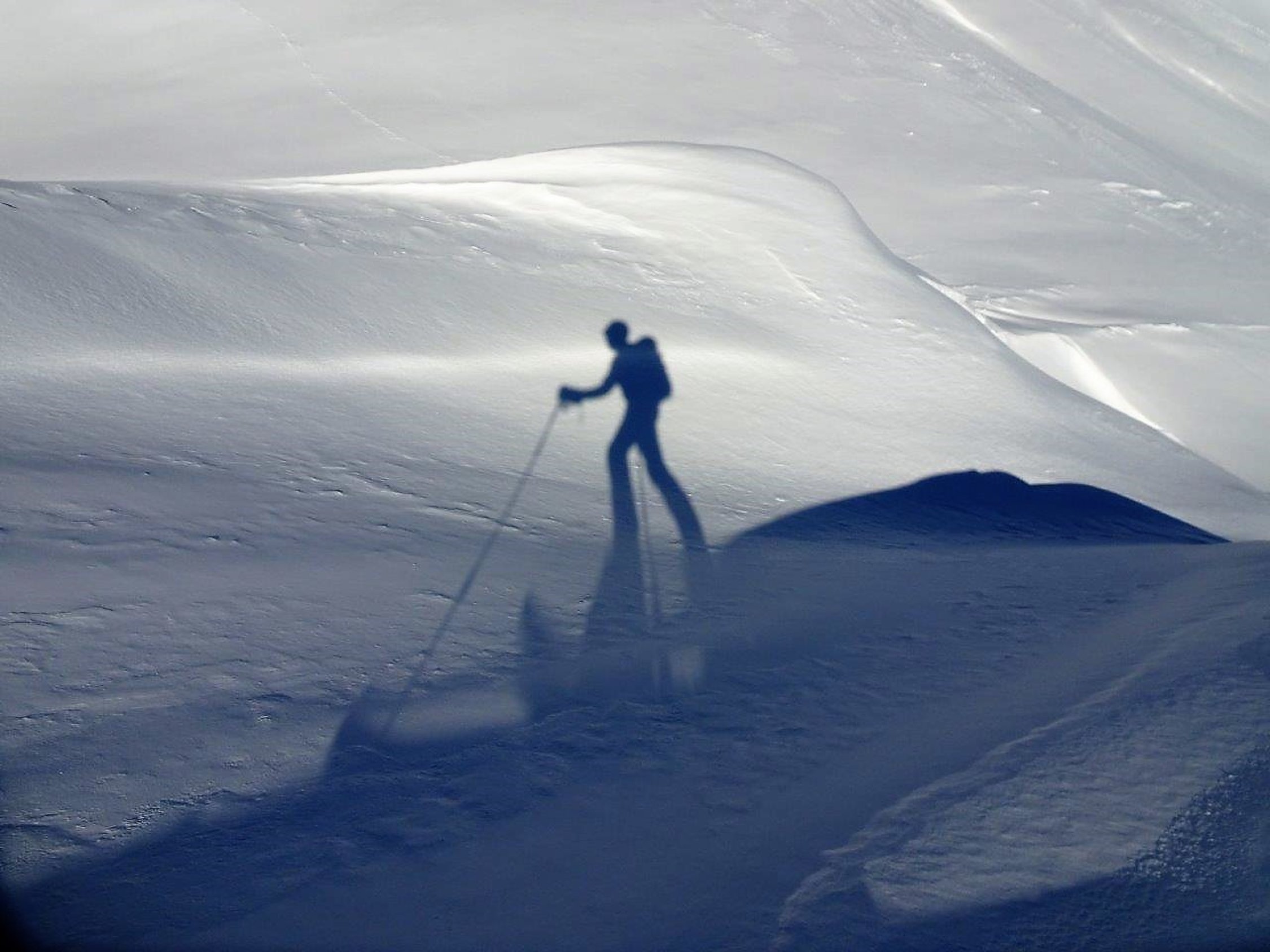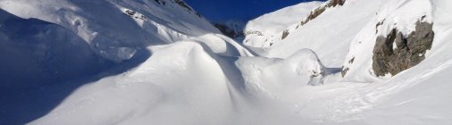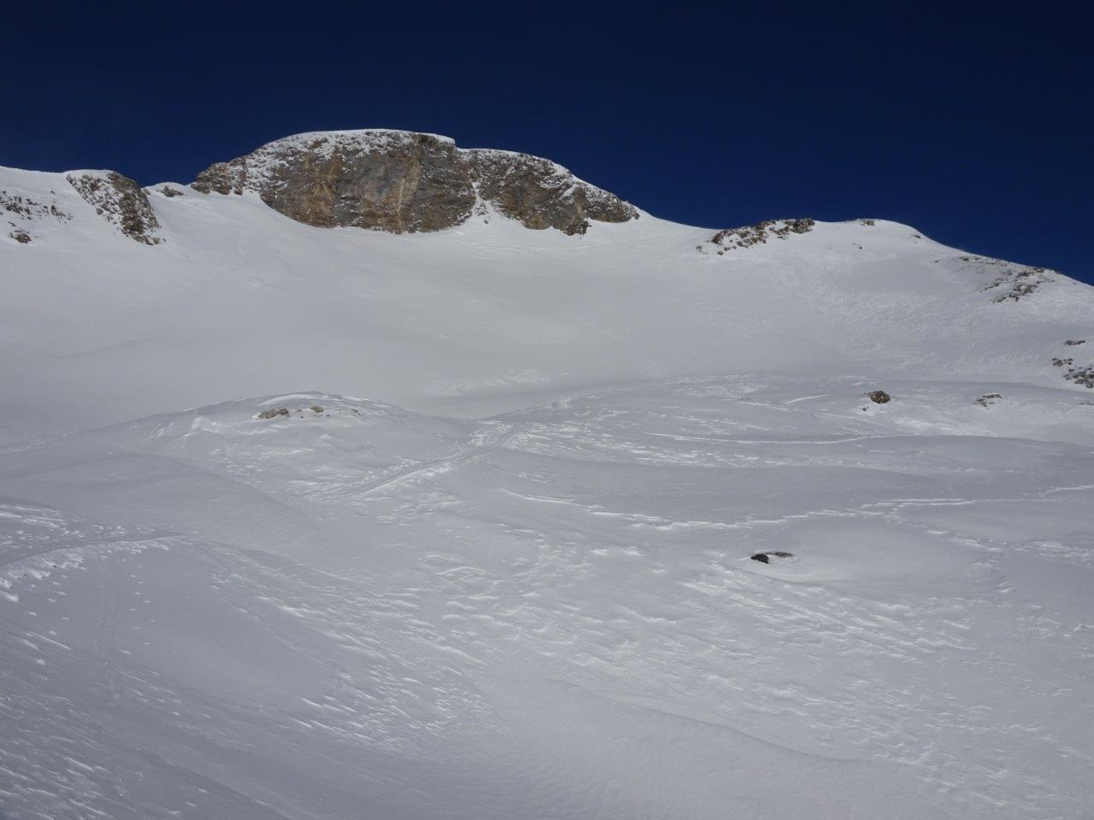 Der Neuschnee wurde bis auf die alte Schneedeck verfrachtet und in den Mulden abgelagert. Viele starke Verwehungen denn schon Gestern fegte der Wind durch die Region.
