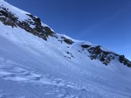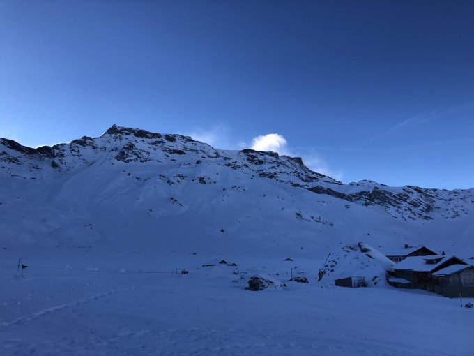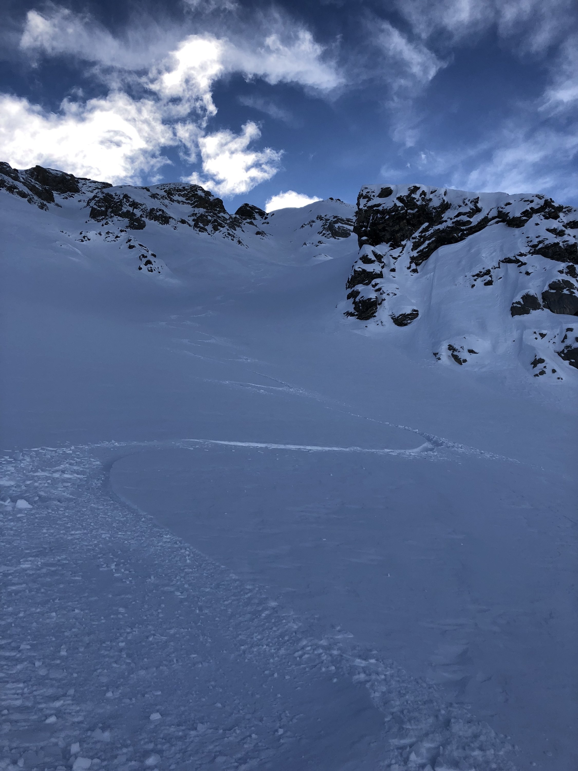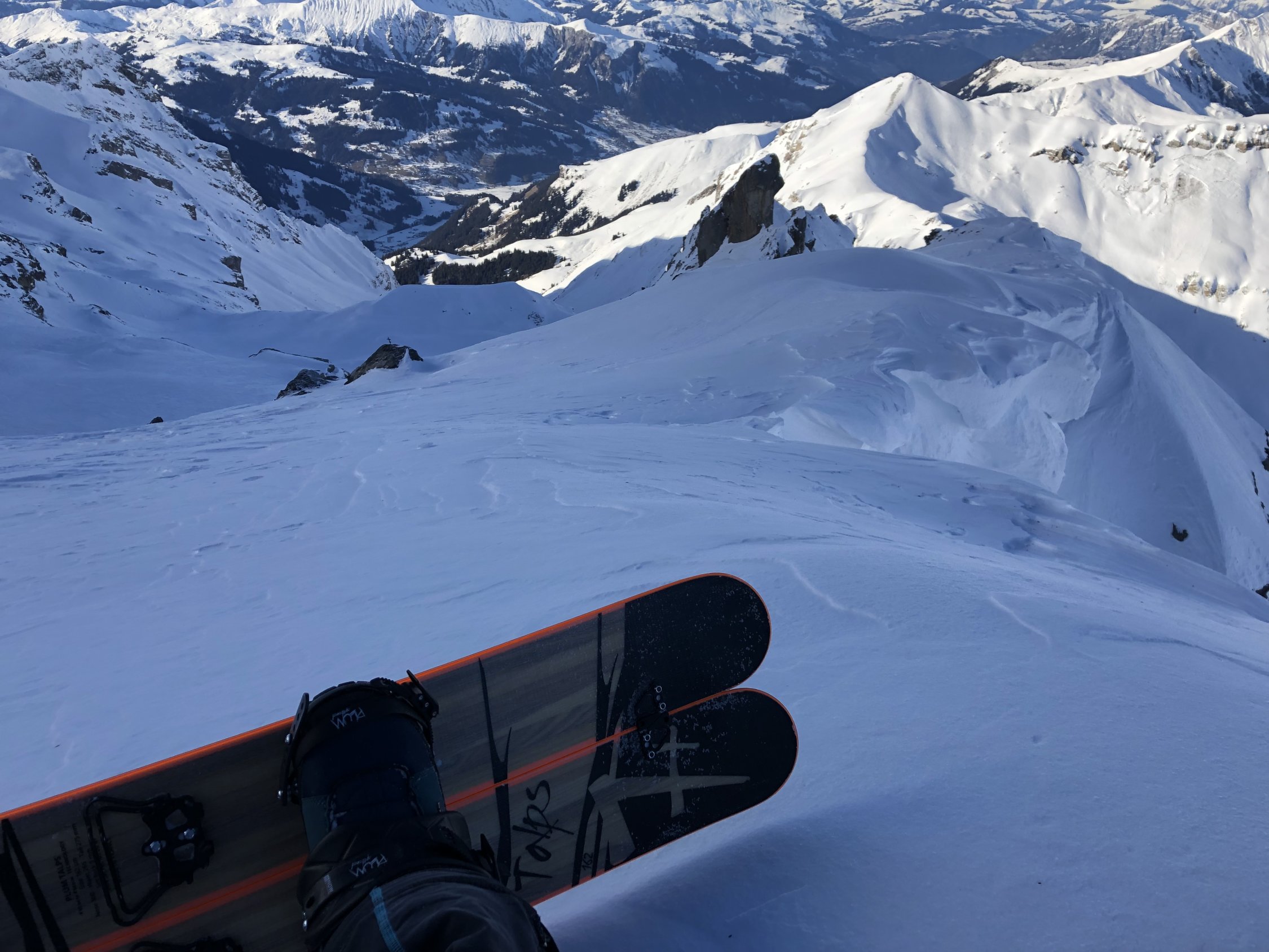 Sonnig, kalt und windig mit windgeprägter Schneedecke. Im Engstligenboden lag rund 15cm lockerer Neuschnee. An den Hängen hingegen hat ihn der Wind massiv verfrachtet und gepresst. Ab dem Frühstücksplatz ist er dann durchgehend hart und ruppig. Bise blies den ganzen Tag und einzelne Böen vermochten mich schier ab den Beinen zu blasen. Bei Querung zum Frühstücksplatz letzte 50m zu Fuss. Die Spur ist schmal und exponiert, kann aber auch mit den Snowboardschuhen noch ohne Steigeisen gemacht werden. Auf dem Adelbodner Strubel ausser mir noch drei Leute, auf dem Mittelstrubel etwa fünf Aufsteiger von Lämmere her. Abfahrt um 13.30. Oben Rodeo, ab Frühstücksplatz Presspulver, der gegen unten immer besser wurde. Im Flyschweng waren noch kaum Spuren drin. Man konnte sich sein ganz persönliches, unverfahrenes Couloir suchen.