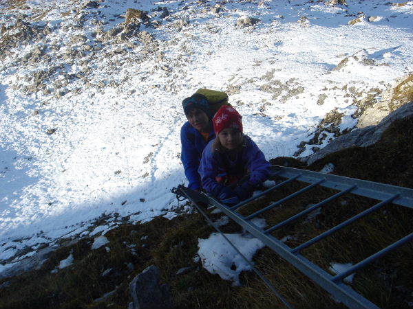 Wir waren sehr überrascht, diese neuen Leitern (Europaleitern 2000) anzutreffen. Dank dieser extrem langen Leitern ist ein rascher Zustieg von Älggi auf das Haupt möglich. Allerdings gibt es keinen Wegweiser, der auf diese Möglichkeit aufmerksam macht und in meinem alten SAC-Führer gibt es sie auch noch nicht.