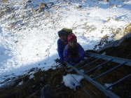 Fast kein Schnee mehr, nur noch beim Abstieg unter den Leitern bei Punkt 2168.
