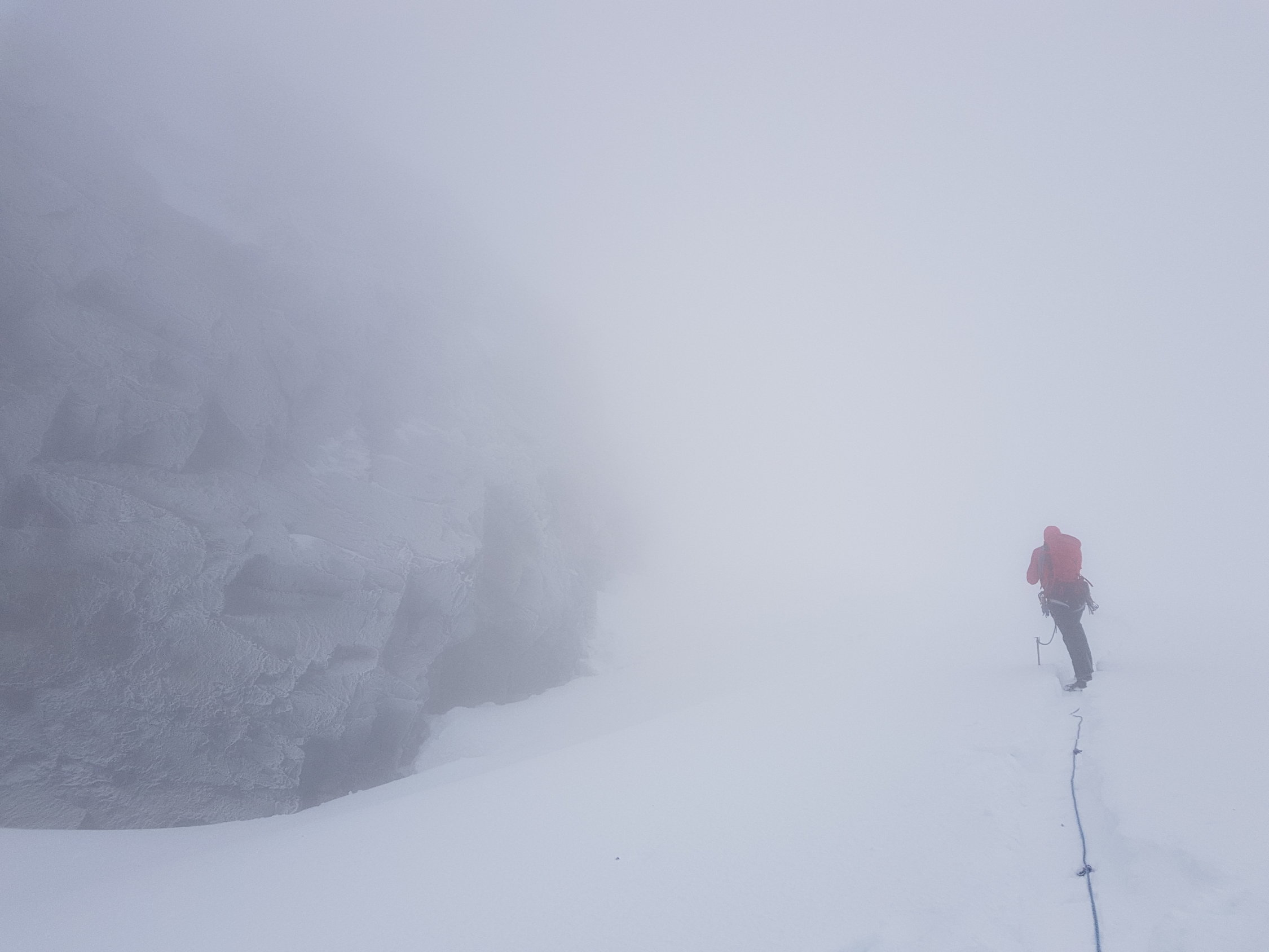 Geplant war der Aufstieg über den Nordgrat, diesen Plan gaben wir aber nebelbedingt bereits beim Start an der Hütte auf.