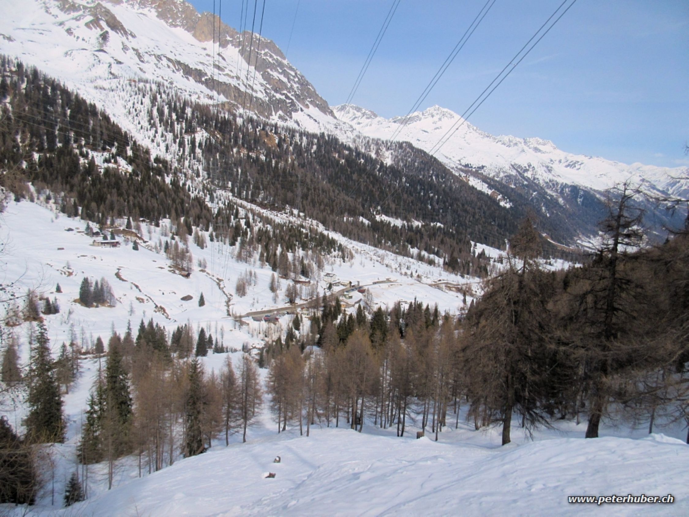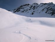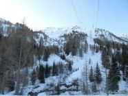 Abfahrt: Start um 12 Uhr. Je nach Hangexposition sehr verschieden - hart, wenig Sulz, Pulverschnee. Besonders im Mittelteil auf der westlichen Seite des Cavagnolotals schöne Pulverschneeabschnitte. Zwischendurch störten die harten Knollen von alten Lawinen. Im Wald dann harte Bobbahn bis zur Brücke hinunter.