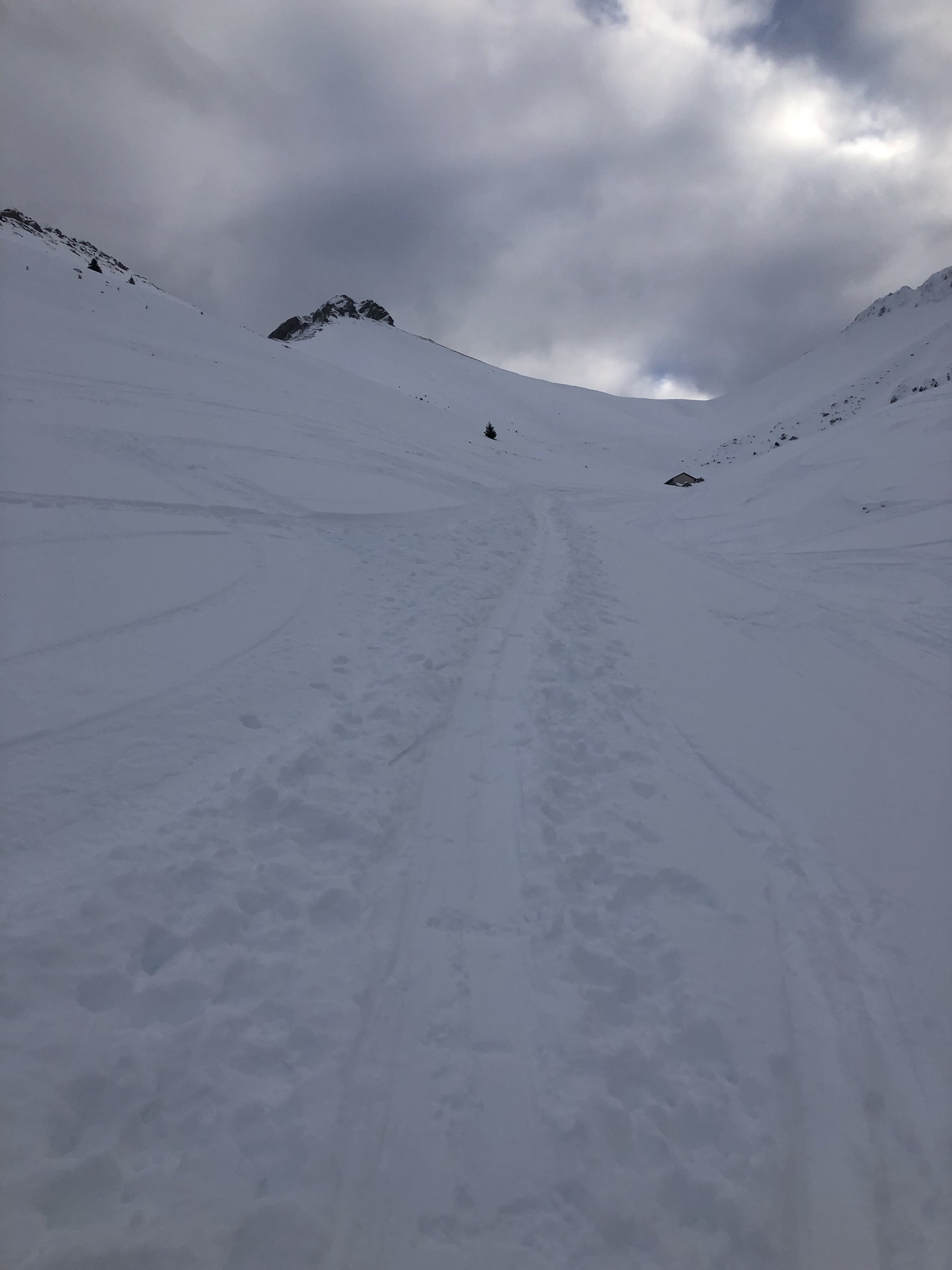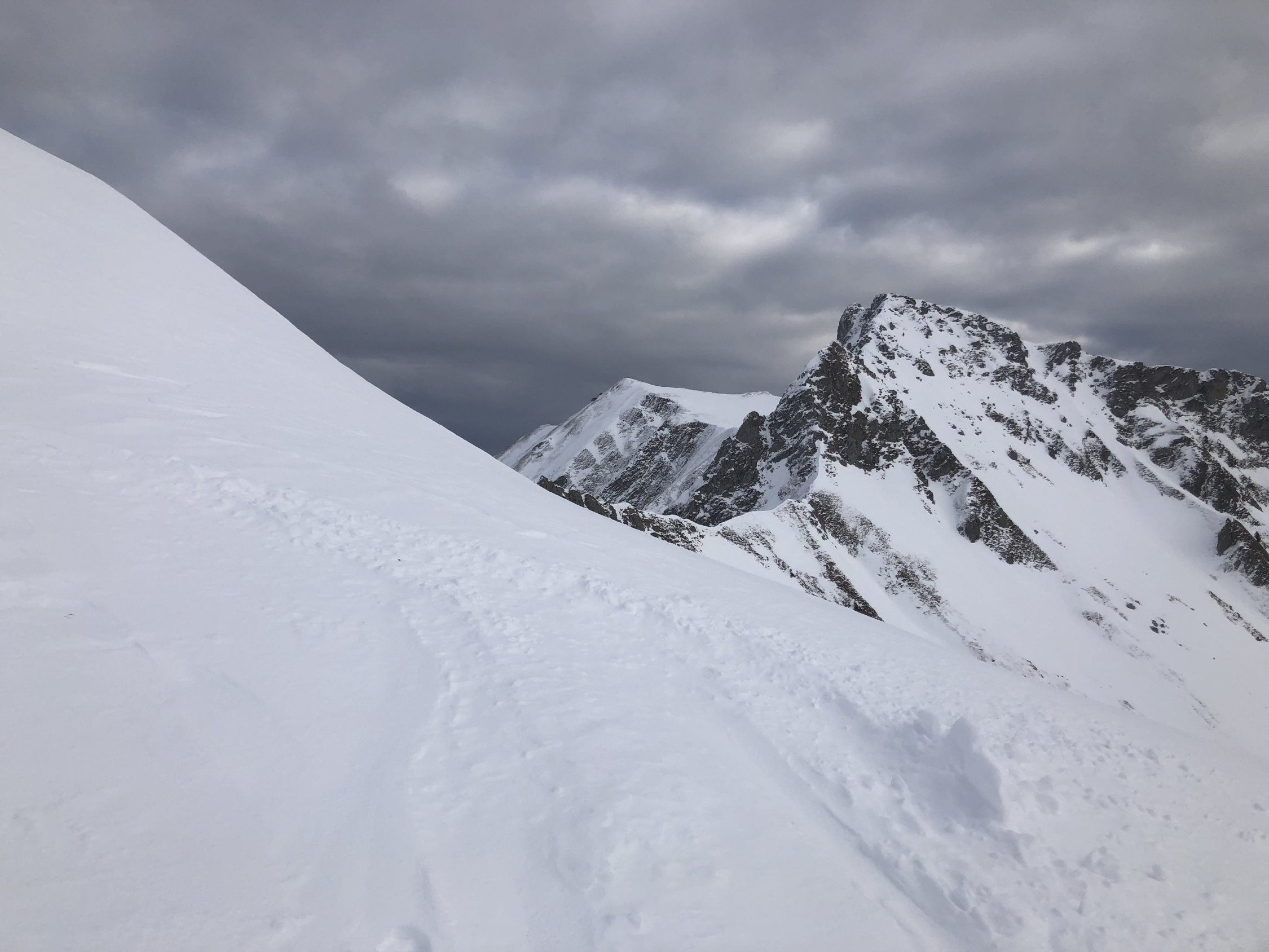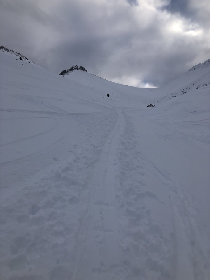 Oben ist der Schnee etwas Wind bearbeit, untere