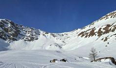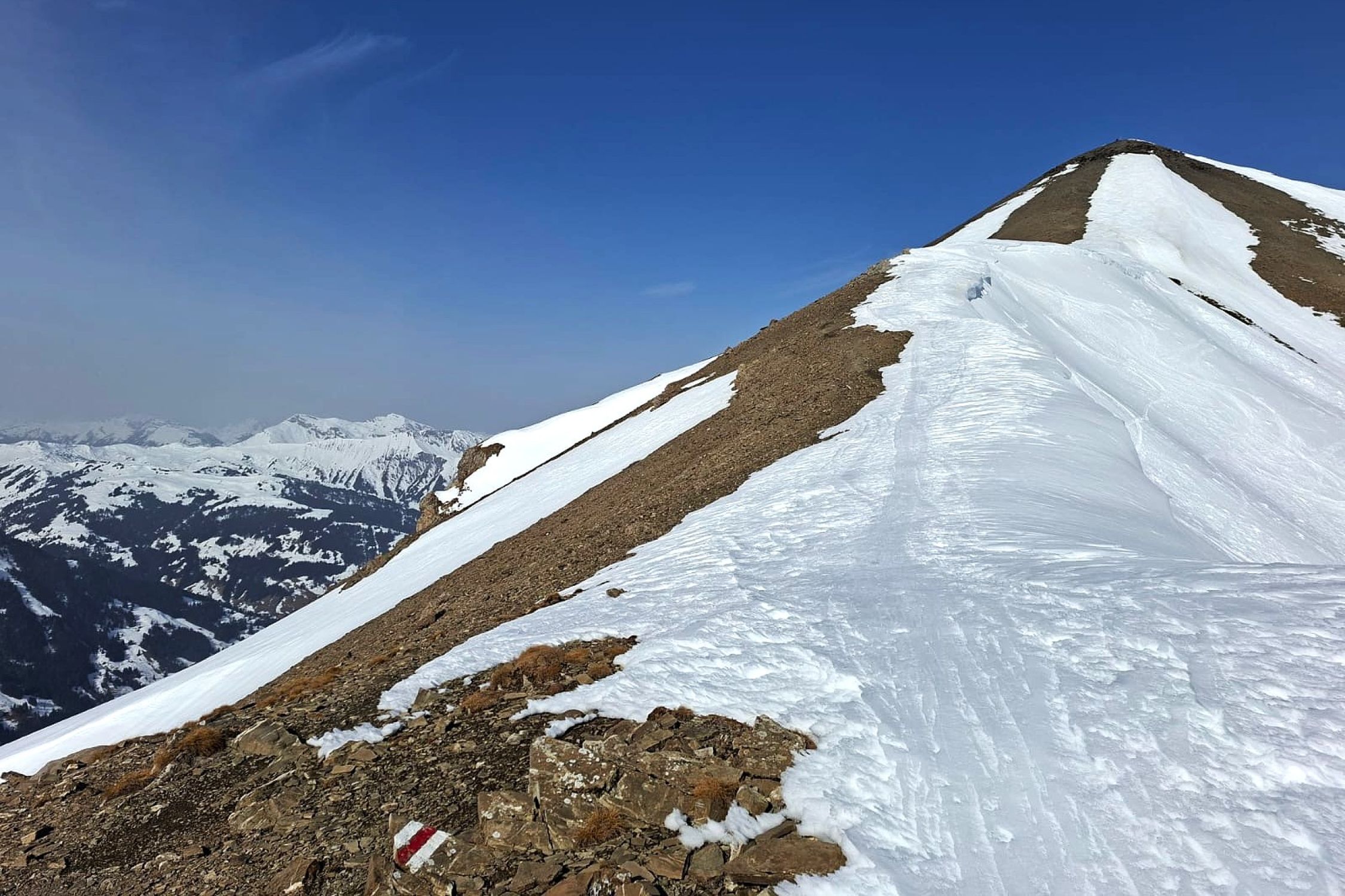 Trail für Schneeschuhe sowie Skispur für Türeler überwiegend gefroren/hart. Ab Ammertepass zunehmend windig. Auf dem Gipfel starker und kalter Wind. Pause kurz gehalten. Im Laufe des Vormittags drang der Saharastaub über die Alpen. Unterwegs nur noch 4 Skitüreler angetroffen.
