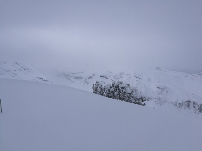 Unterhalb von 1.800 Meter fiel der Schnee komplett ohne Wind Einfluss. Darüber hat es den Schnee verfrachtet, jedoch nicht so stark wie befürchtet.