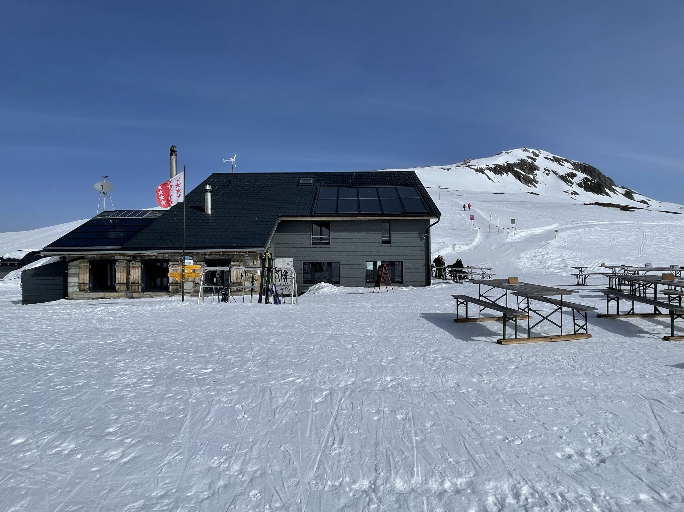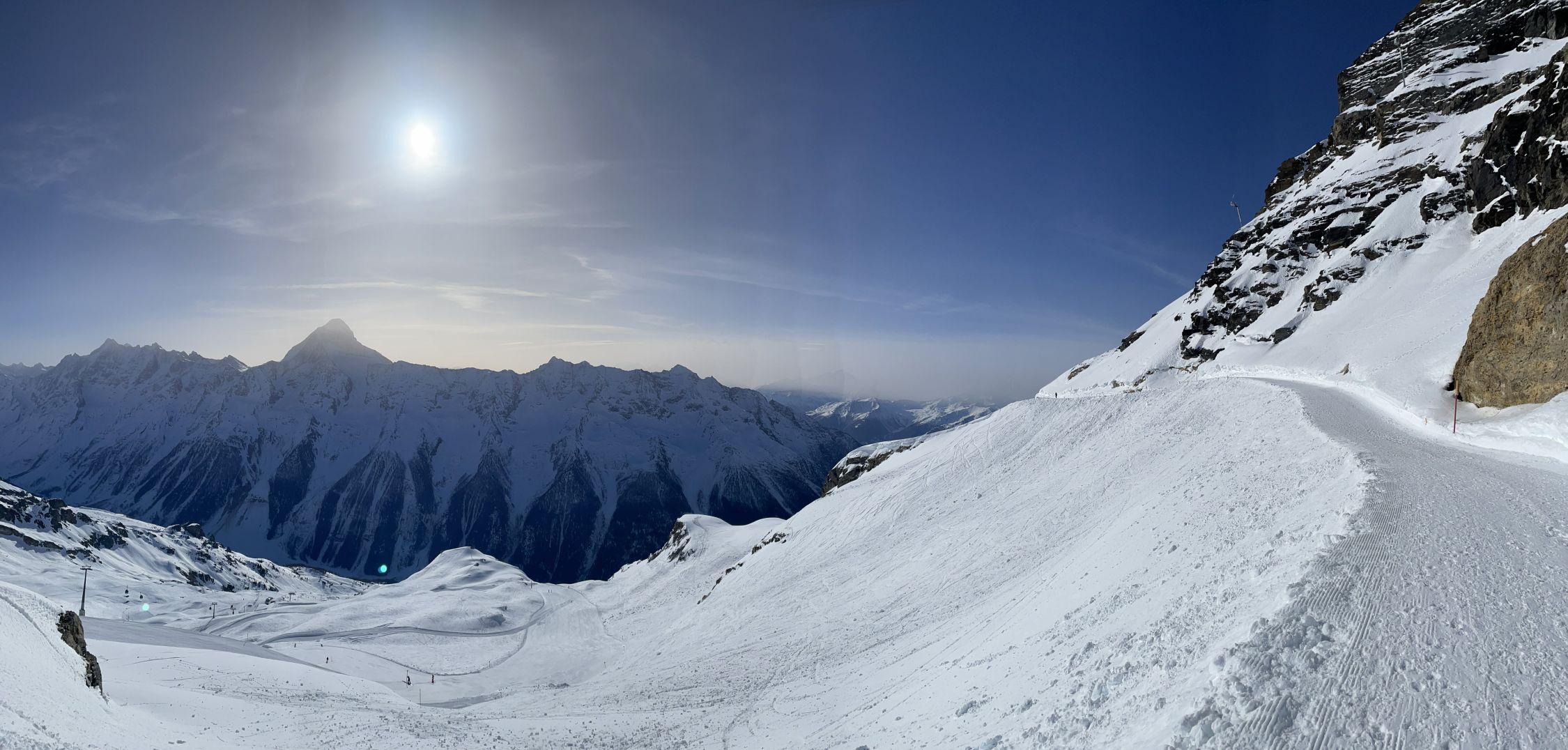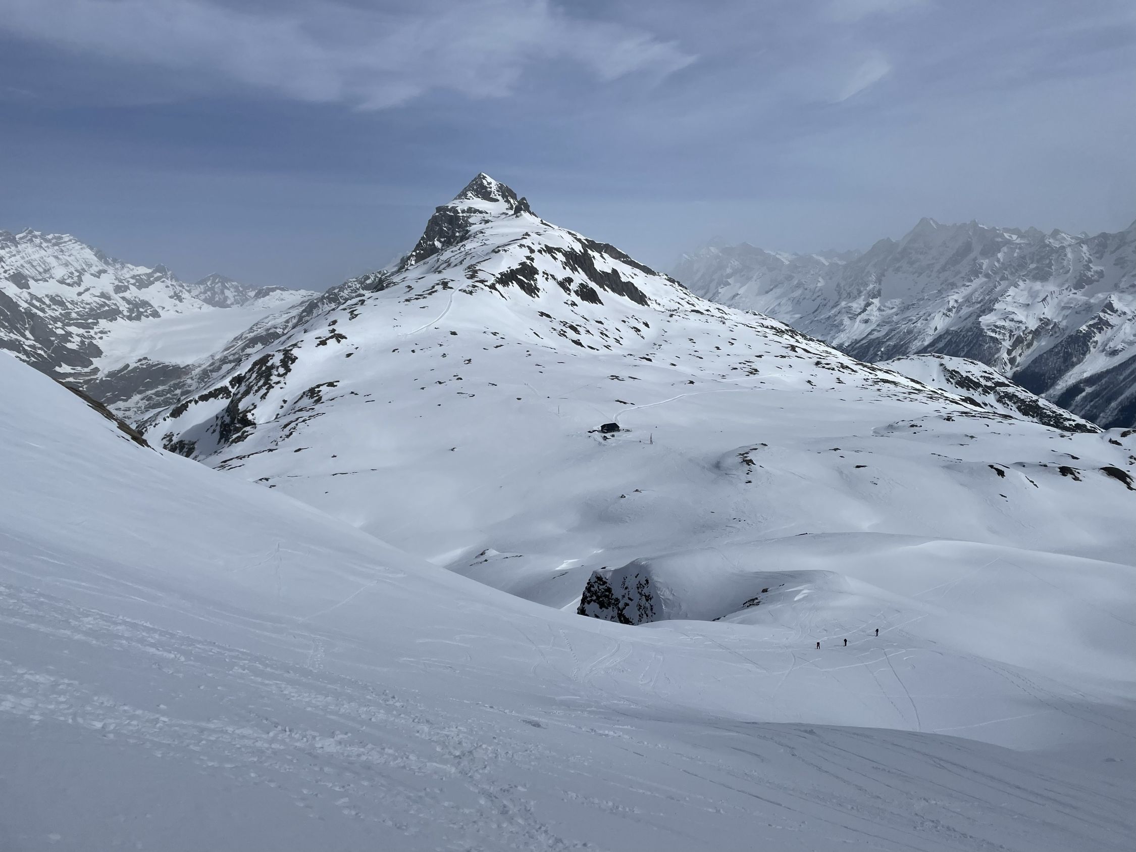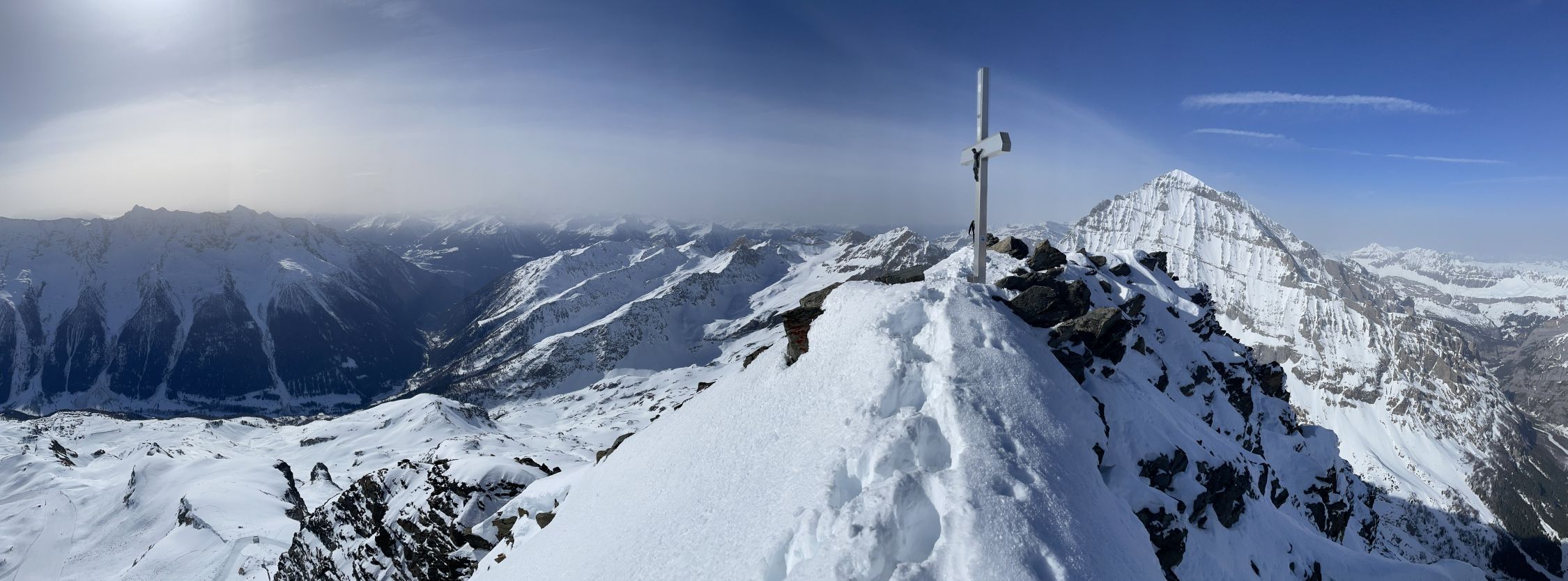 Immer wieder eine wunderbare Überschreitung. Eindrücklich war das eintreffen des Saharastaub. Zu Beginn war noch knapp die Mischabelgruppe zu sehen, später war auch diese im Staub verschwunden wie die übrigen grossen Gipfel(Matterhorn, Mont Blanc usw.)