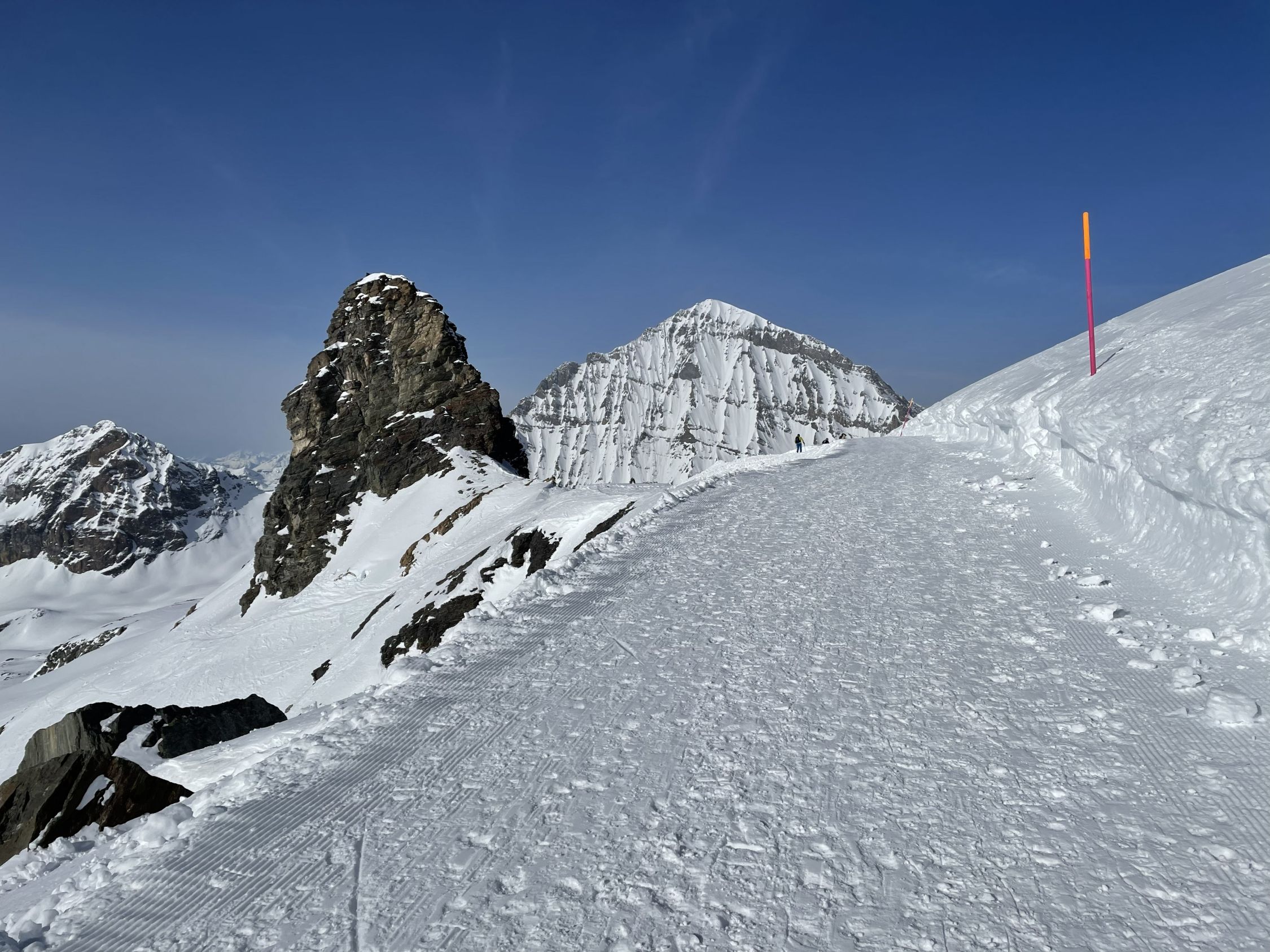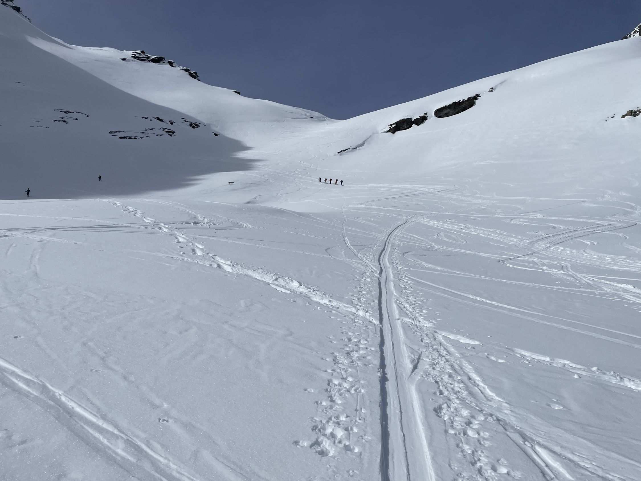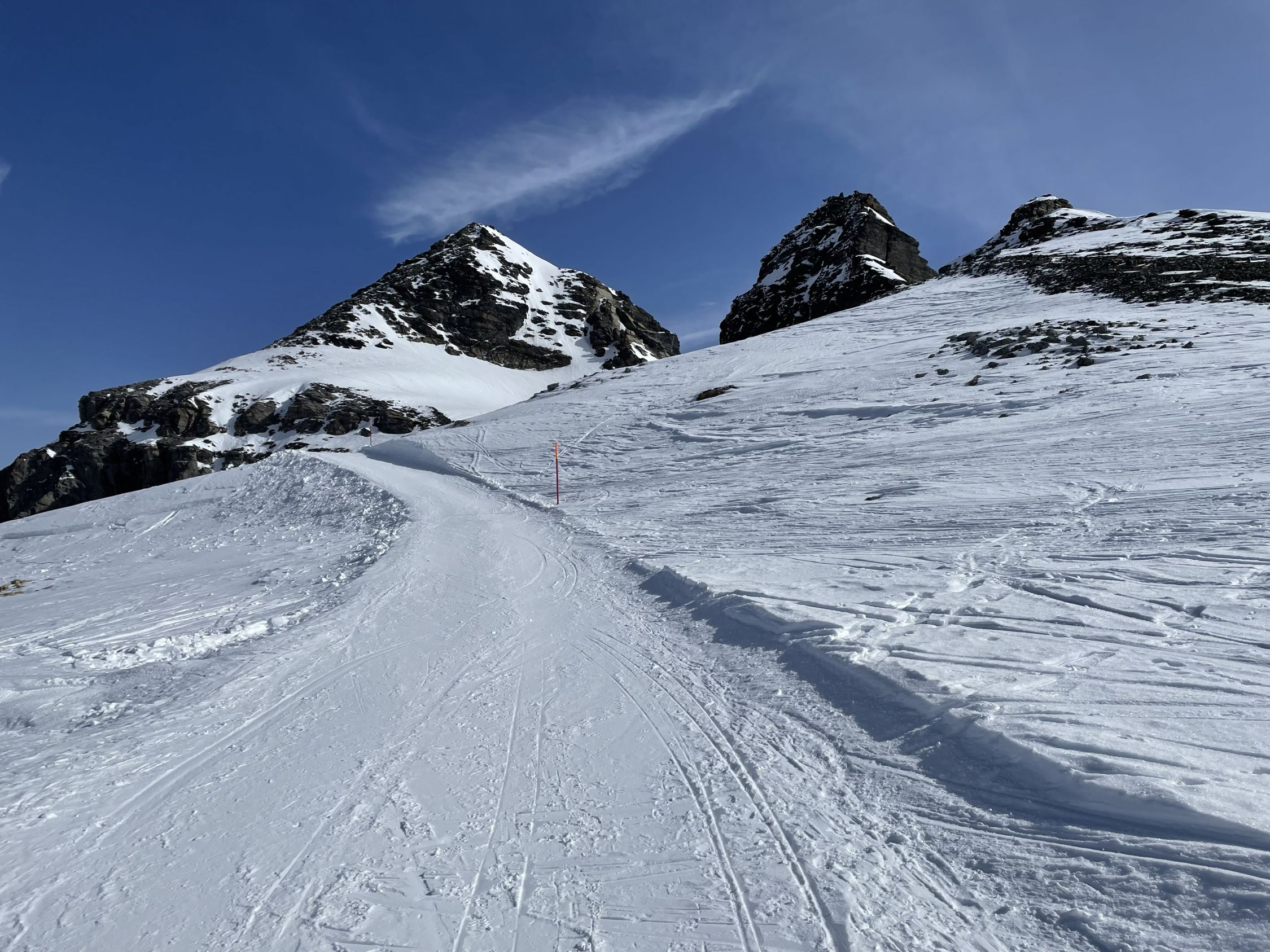 Schnee: insgesammt sehr gut eingeschneit bzw. im Detail; Querung ab Bergstation Hockenhorngrat bis Skidepot Hockenhorn; hart und griffig, Fussaufstieg Hockenhorn; ebenfalls sehr gute Spur hart und griffig, einzelne Tritte etwas eisig, Abfahrt nach Lötschenpass; meist hart und griffig, teilweise bereits etwas angefeuchtet, Aufstieg zur Gitzifurggu; Top Spur, Abfahrt nach Leukerbad(kurz nach 13.00Uhr); super Frühlingsverhältnisse