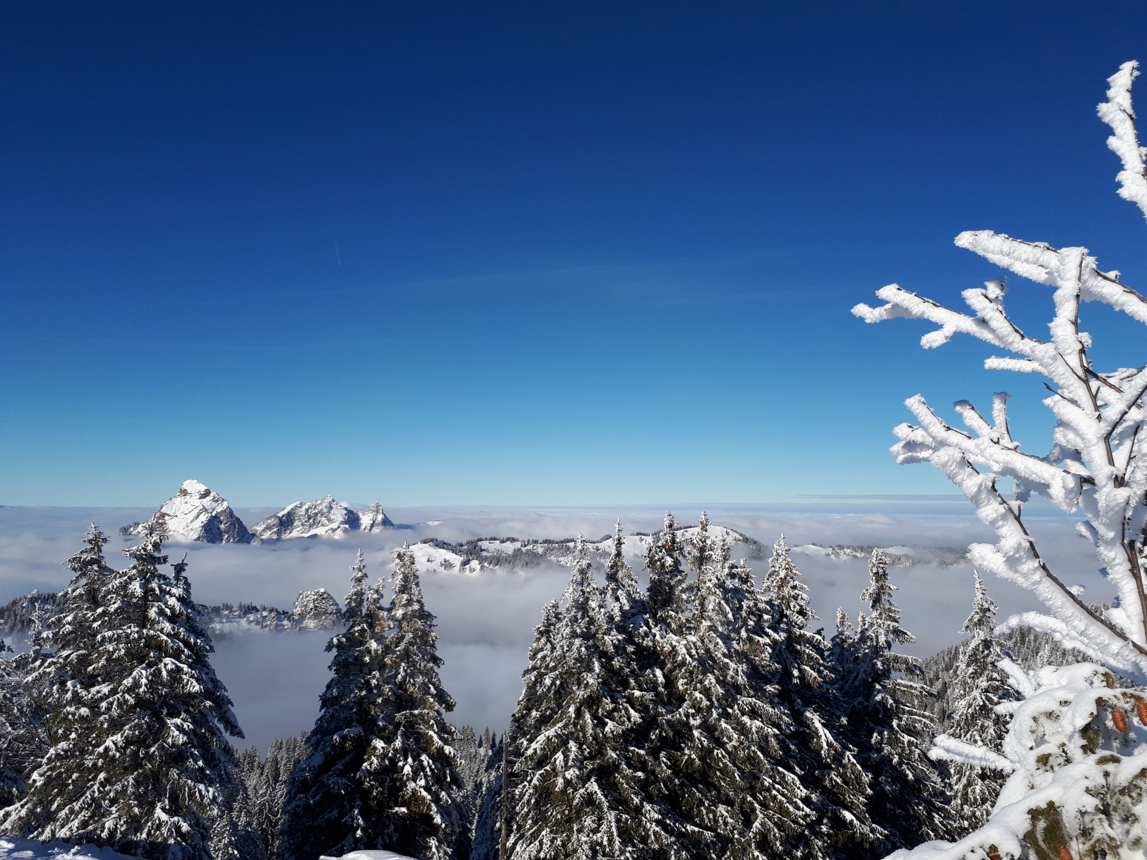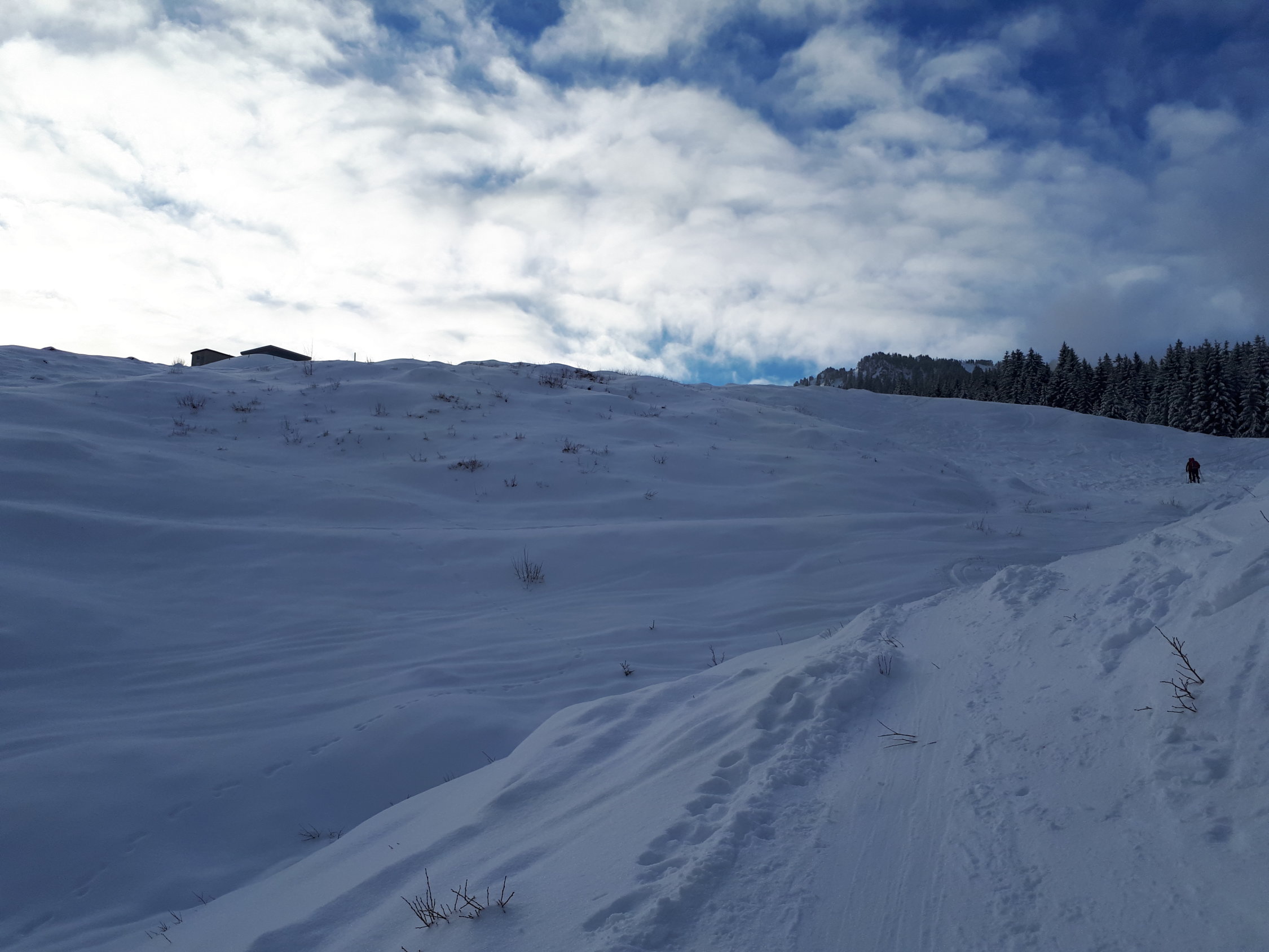 Wie immer eine schöne und einfache Tour bei Verhältnissen, wo man nicht mehr überall hingeht. Ein wunderschöner Aufstieg durch den Wald und auf dem Gipfel die verdiente Pause an der Sonne. Die Abfahrt war schön, aber nicht traumhaft. Ein wenig Bruchharsch und darunter eher schwerer, jedoch pulveriger Schnee. Die Schneedecke ist nicht riesig, aber es sehr gut ohne Steinkontakt. Es wurde erzählt, dass genug Schnee liegt bis auf Illgau runter.