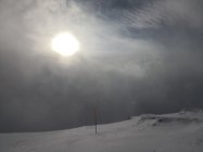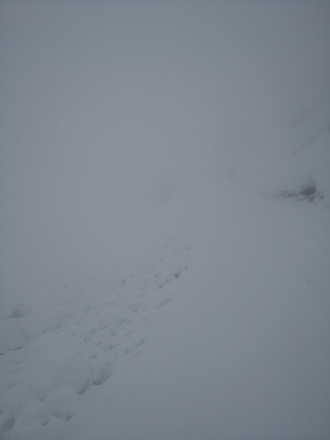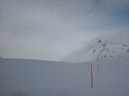 Skitour zur Bergstation Bettmerhorn. Bin zuerst dem Winterwanderweg bis Moosfluh gefolgt, ab dort dann der Skipiste entlang. Dies infolge ca. 20m Sicht. Stürmischer Wind ab dem Grat nach Moosfluh. Oben am Bettmerhorn Orkan. Letztes Steilstück sehr kräftezerrend, da der Wind mich fast wieder runterblies.