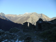 Tourenbeginn bei 2°C jedoch unter wolkenlosem Himmel. Auf dem Gipfel gab es kalte Nordwindböen.