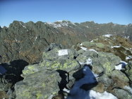 In der Gipfelbox liegen 2 Gipfelhefte: eines vom 27.12.2015 und eines vom 13.7.2017. Beide sind jedoch nur zur Hälfte vollgeschrieben. Letzter Eintrag war am 31.12.2018 von 2 Deutschen aus dem Mittelrhein, denen ich am Silvester-Morgen auf dem Parkplatz in Cicogna begegnete.