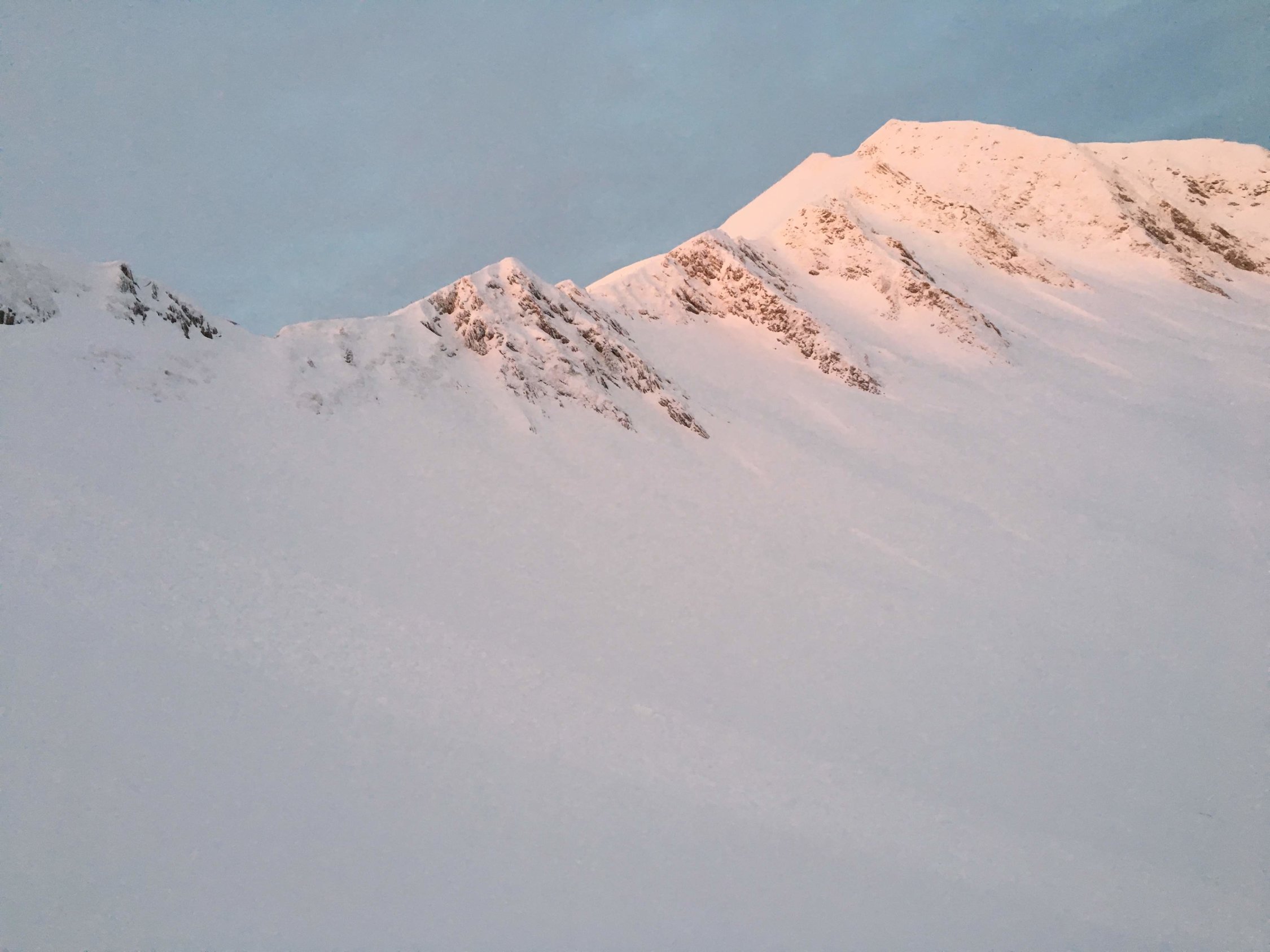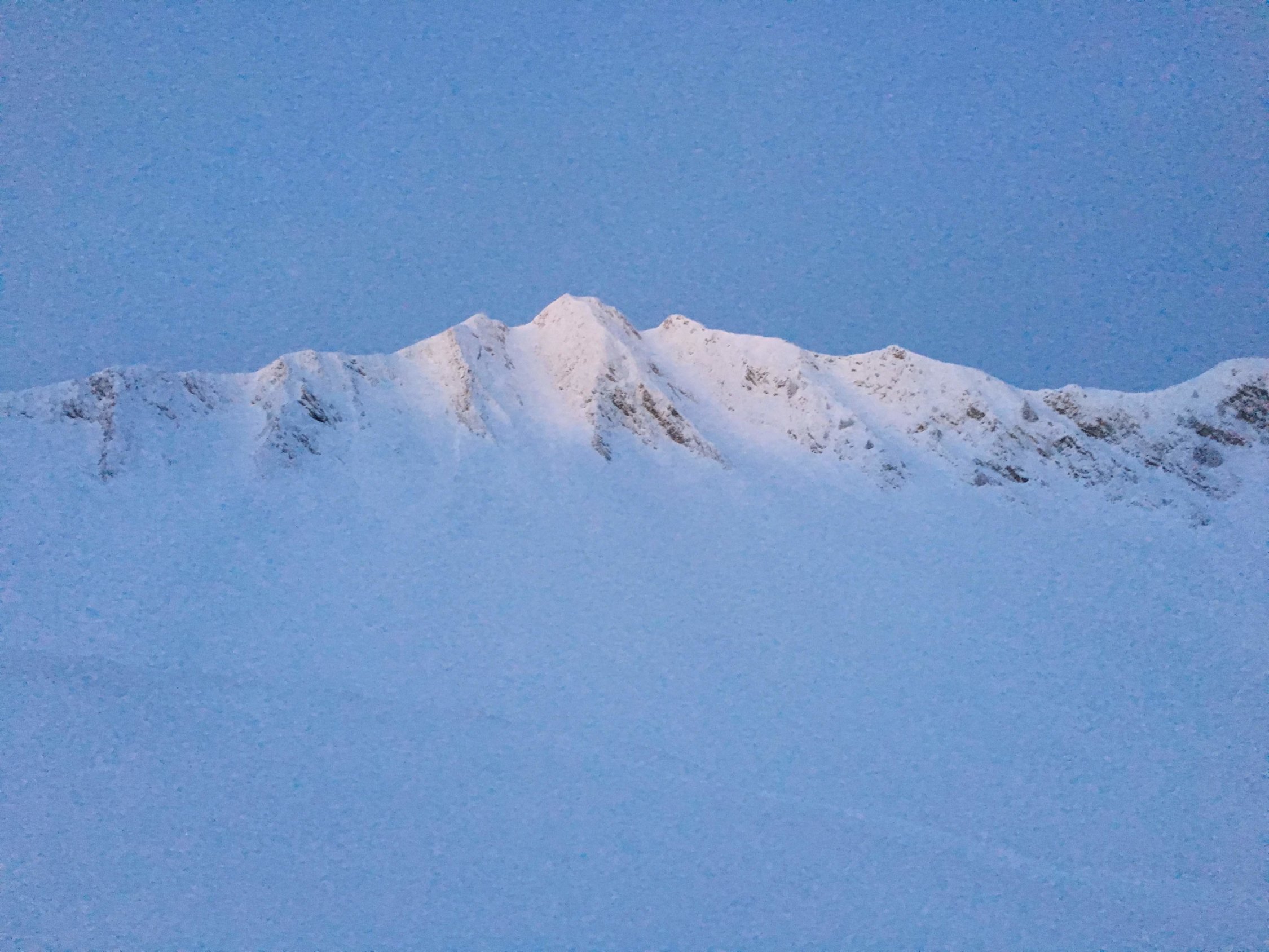 Malgré le sommet manqué, une sortie cool tout de même au petit matin dans une lumière magique et sur et (sous !!) le blanc manteau immaculé.