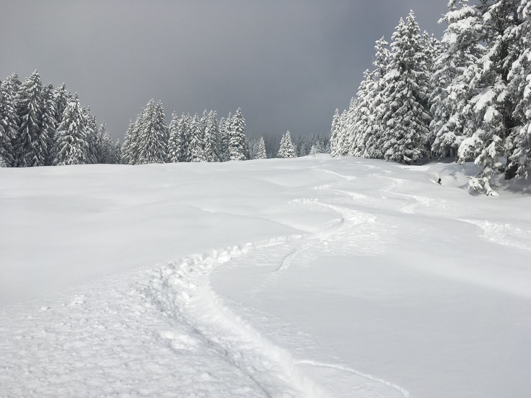 es waren traumhafte wildspitzverhältnisse- kanadischer pulverschnee von oben bis unten. uns hat es so gut gefallen, dass wir auf der heimfahrt nach zürich noch einen kleinen umweg gemacht haben und gleich noch 2/3 roggenstock in unteriberg angehängt habe. auch da die abfahrt war ein traum. nirgend steinkontakt. die aufstiegsrote auf dem roggenstock etwas sanfter besten dank. der winter kann sich ausbreiten. wir waren nicht die einzigen, die den wildspitz sofort gebucht haben aber es hat sicher noch platz für spuren.