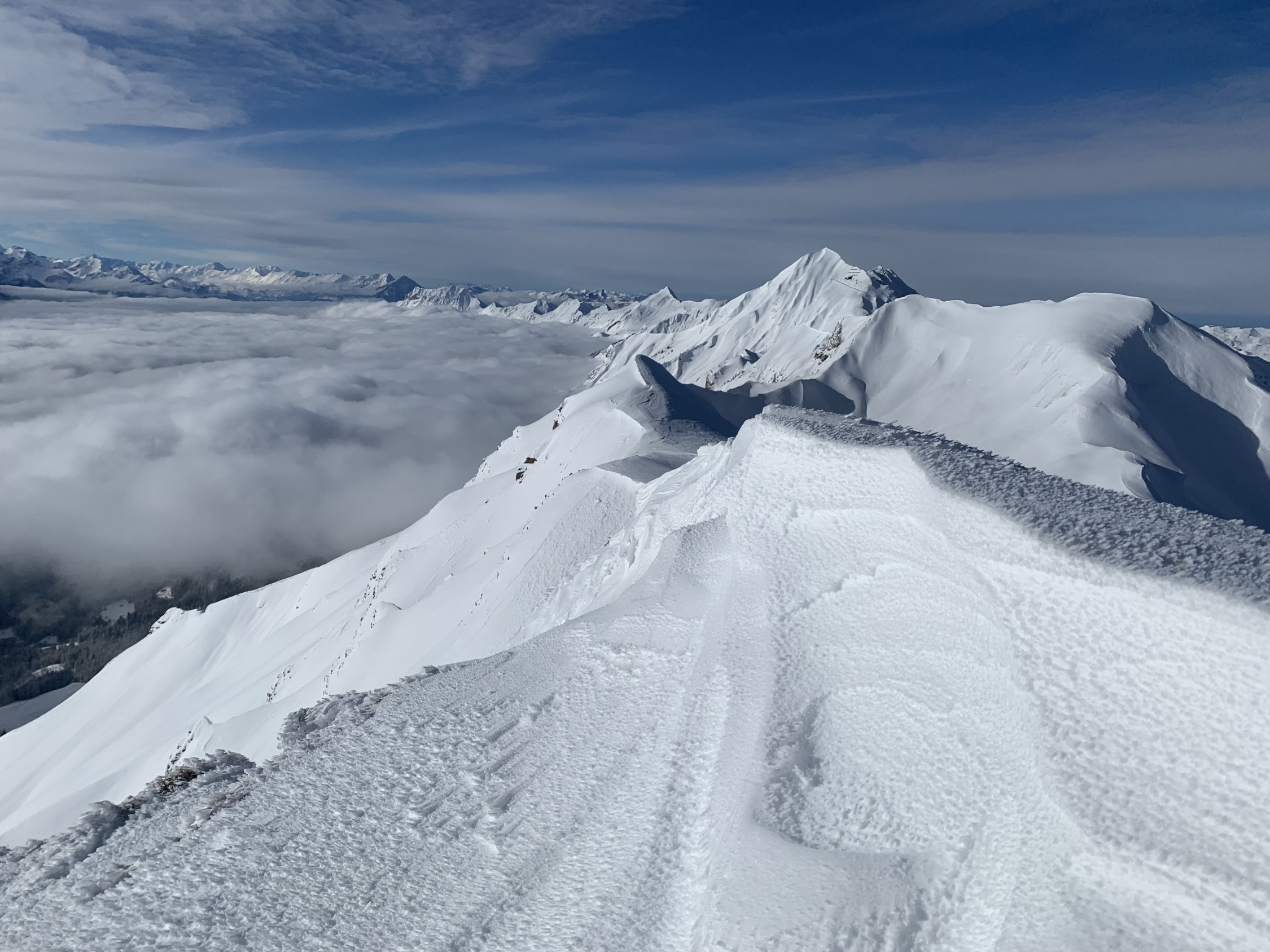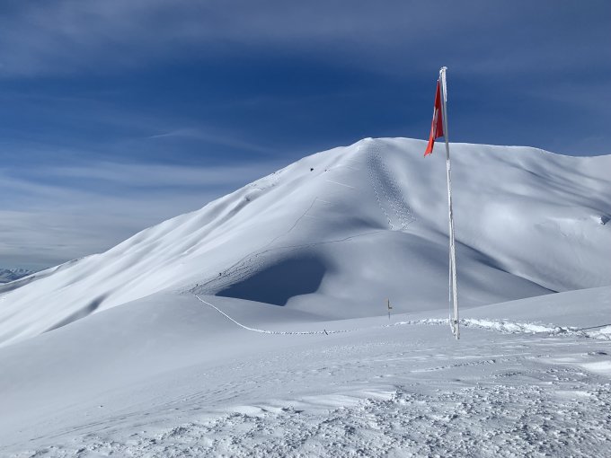 Ab Turren ca, 2 Std Aufstieg, mehr als genug Schnee, südseitig bereits gute Sulzverhältnisse (Abfahrt Richtung "Usseri Alp"), ansonsten unterschiedliche Schneekonsistenz