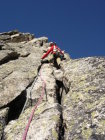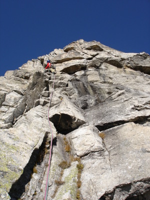 Abwechslungsreiche Granitkletterei über den SE-Pfeiler. Schwierigkeitsgrad 5c