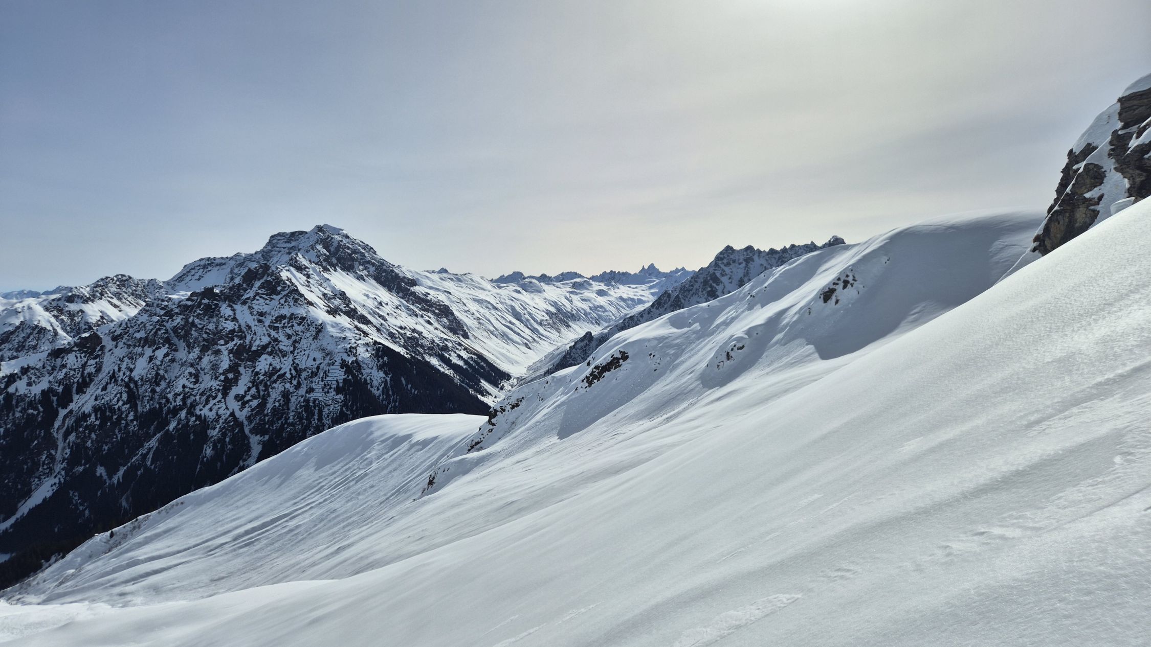 Abfahrt Nord, danach Aufstieg zum riedkopf und wieder im firn runter nach gargellen.. am Schluss piste... das ist ein Vorteil, dann muss man nicht so früh dran sein...