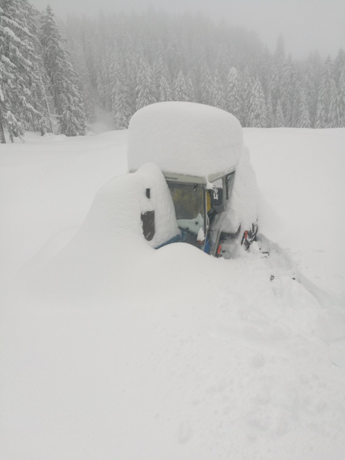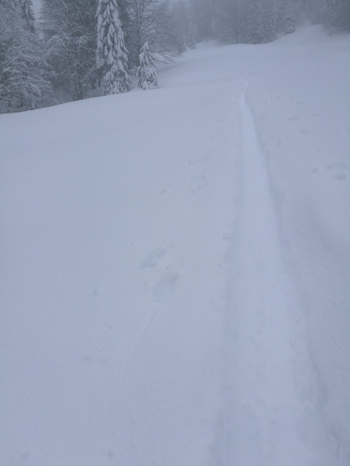 Schneefall ab dem Parkplatz. Unten hat es bereits Ca 30cm neuschnee. Oben sicher 50cm.