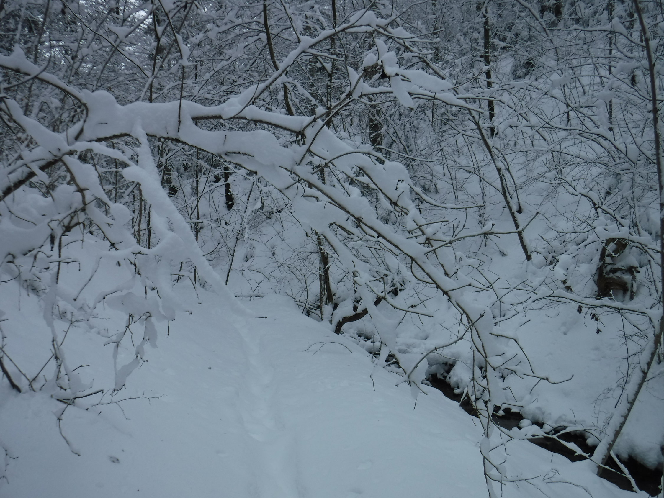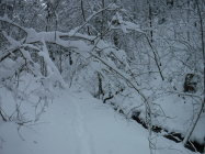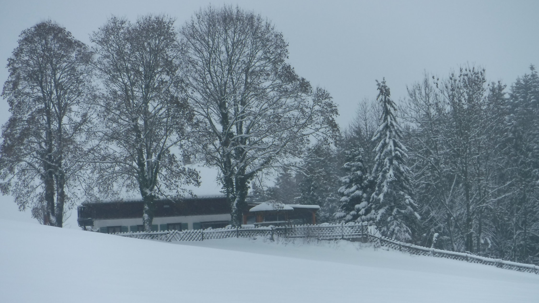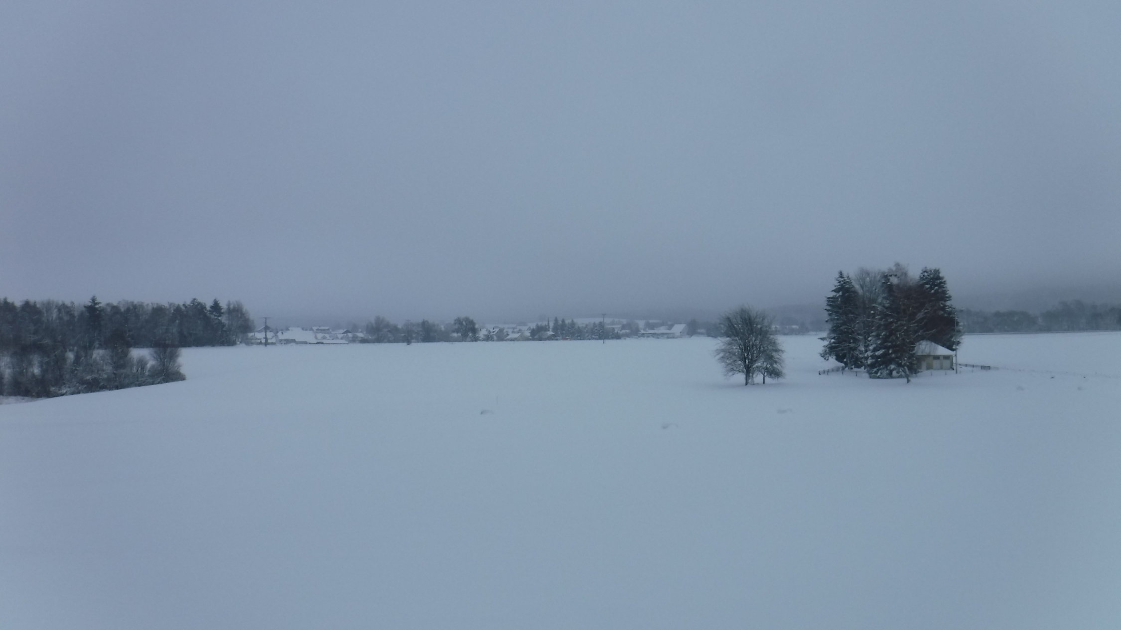 Tourenbeginn bei 1°C nach erneutem Schneefall in der Nacht. Stellenweise liegt bis zu 30 cm nasser Schnee, der aber morgens noch nicht pappig war. Schneeschuhe ab dem Hochtobelweg im Lauratal angelegt. Durch die Straßen von Oberankenreute bis Ende der Dorfstraße in Hintermoos am Rucksack dann angeschnallt. Ebenso auf dem Rückweg ab Fuchsenloch. Im Altdorfer Wald waren noch keine Schneebrüche sichtbar, sieht man mal von 3 sehr kleinen Fichten ab, die über dem Forstweg lagen.