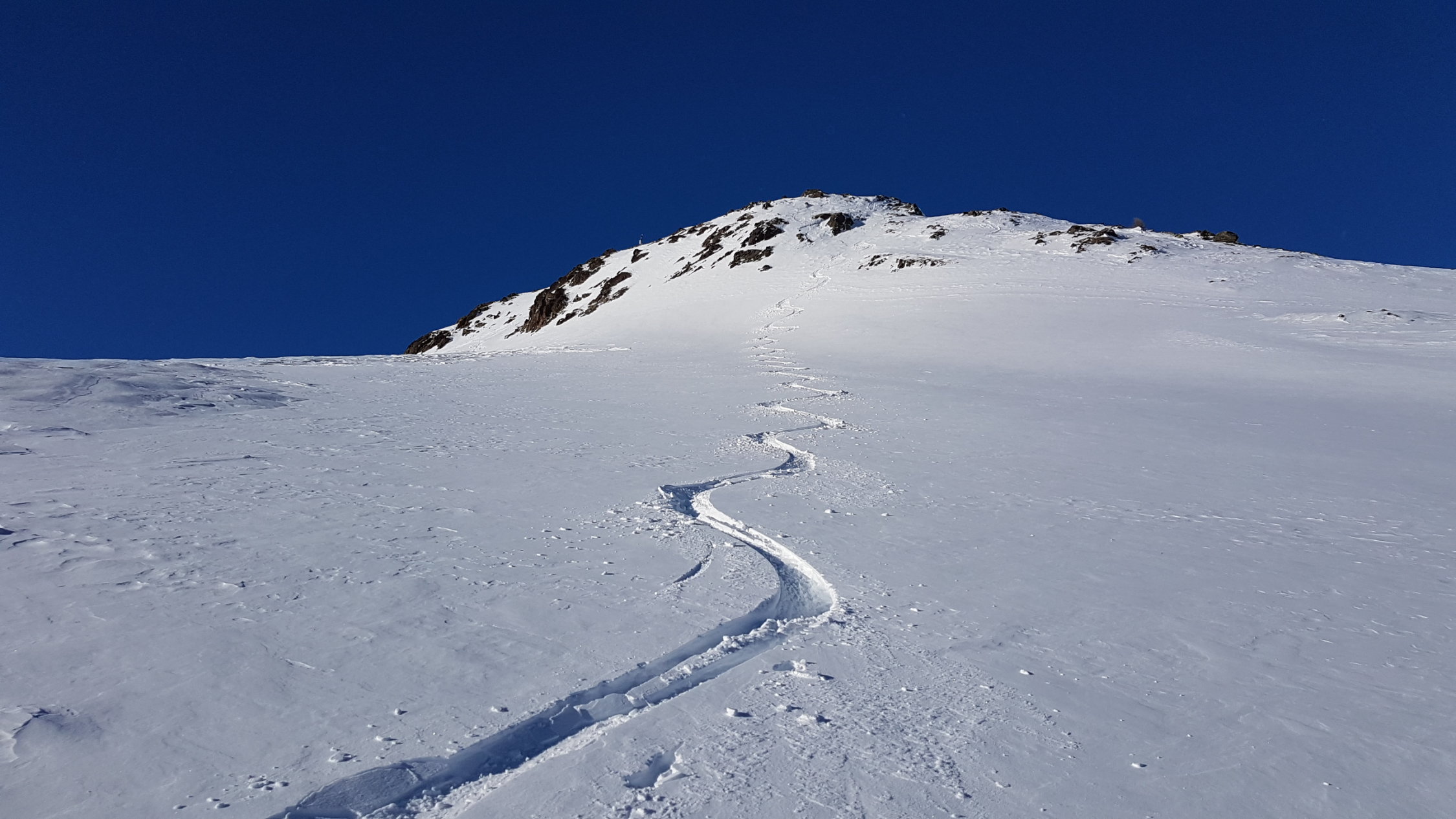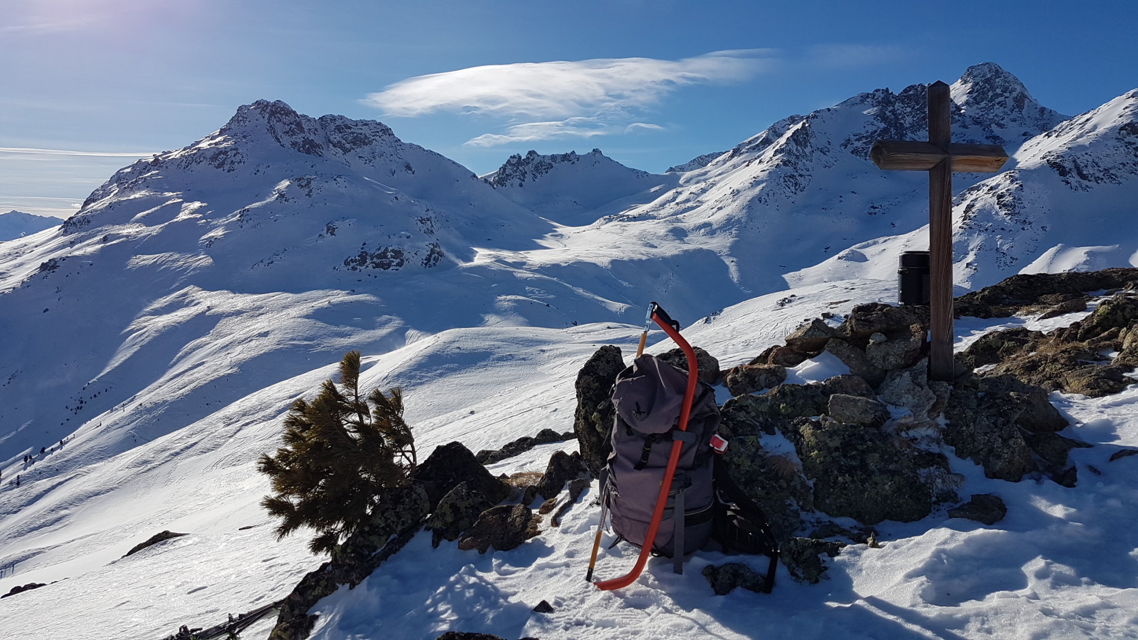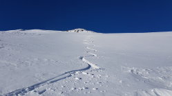 Unten war ca 50cm Neuschnee zum Spuren. Oberhalb der Waldgrenze war wieder der Wind stark drin, Unterlage zum Teil ganz hart.