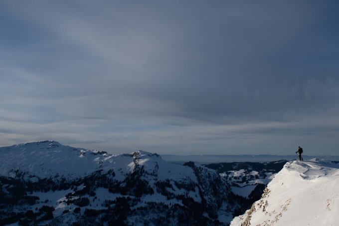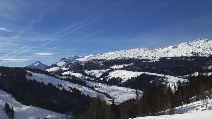 Beim Aufstieg kam uns in der Ferne eine Gruppe entgegen, die die Abfahrt direkt ins Dorf Sörenberg nahm. Danke fürs Spuren im oberen Teil. Ausser Schneeschuhläufer sonst keine Personen mehr am Berg. Erstaunlich, bei diesen herrlichen Verhältnissen. Die Abfahrt war sensationell. Pulver (ca. 15 cm), darunter gute Unterlage. Sogar das kurze Steilstück im Wald (unterhalb Dählenboden) war sehr gut zum Abfahren, da Schnee locker war (schattig).