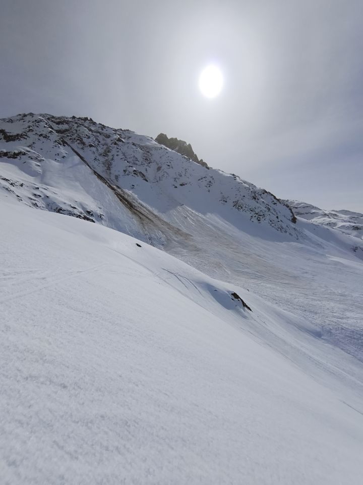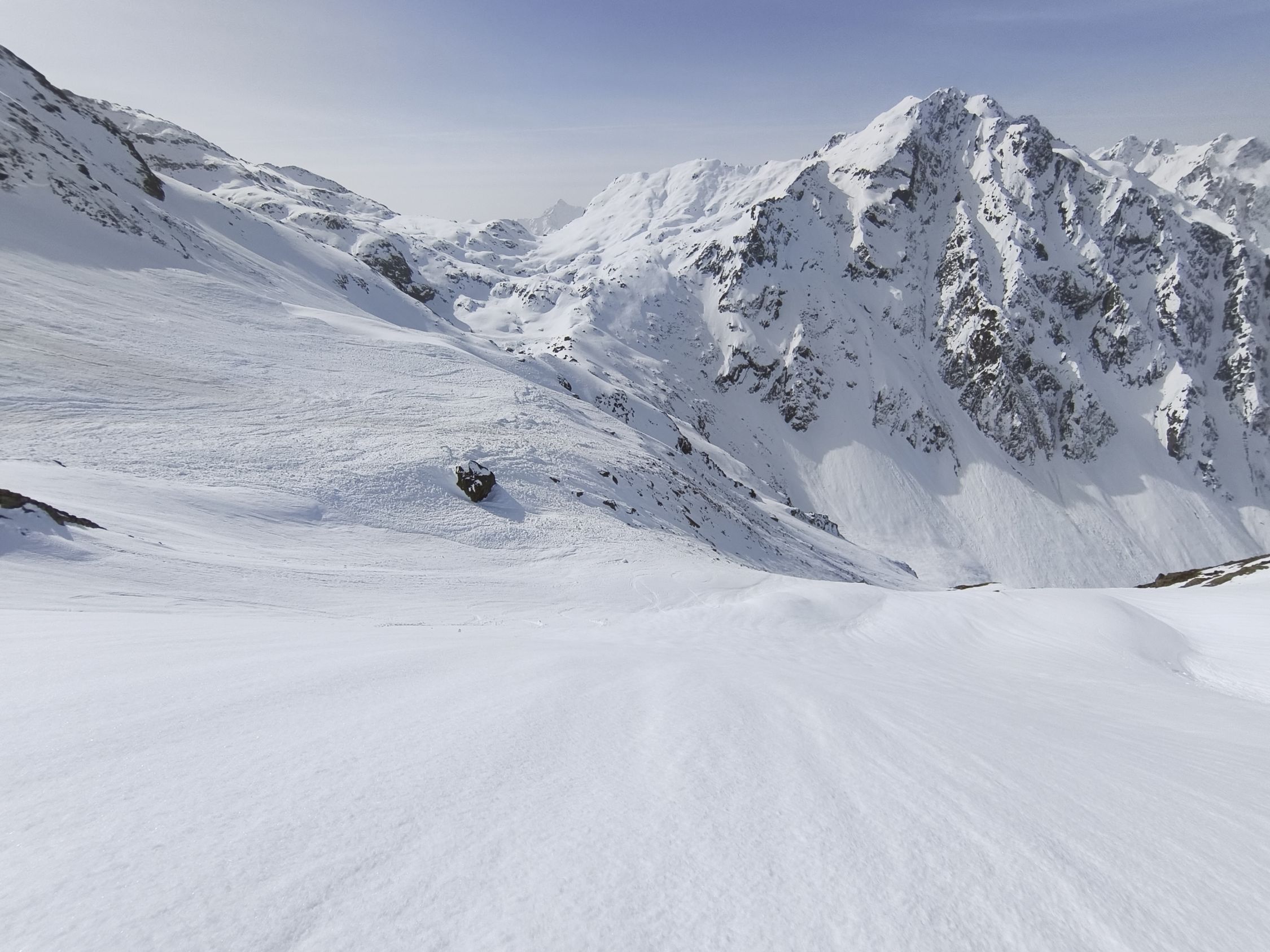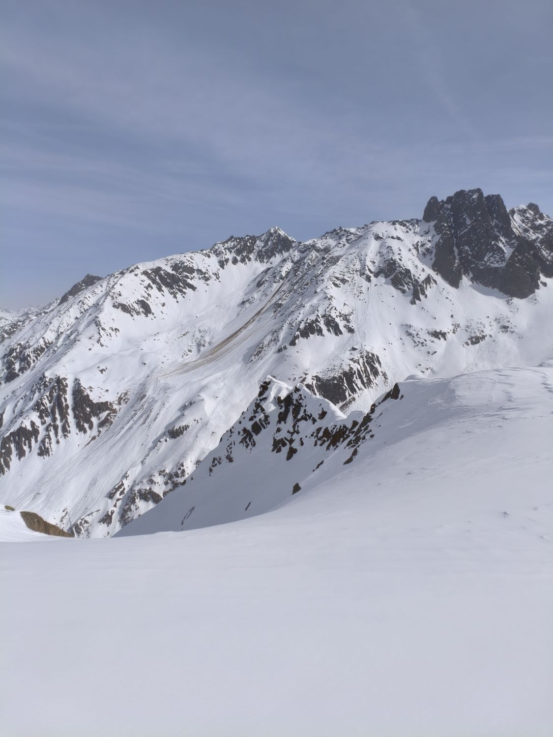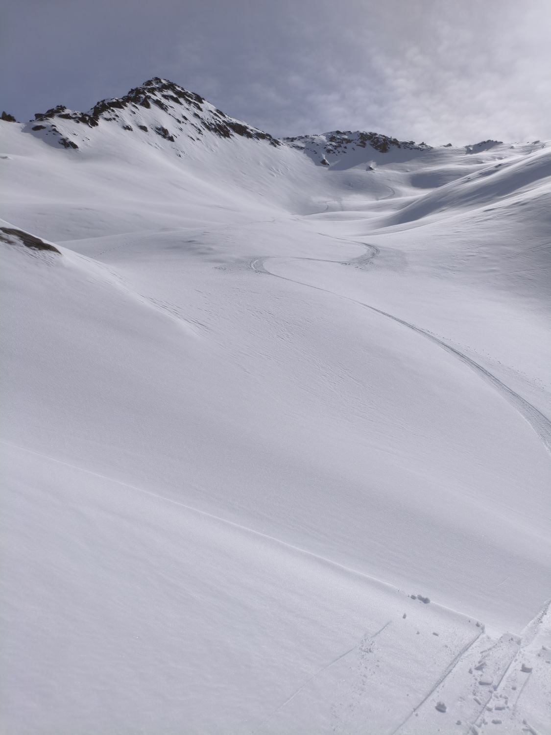 Aber es hat extrem viele und extrem große Lawinen vom letzten Schneefall und teils von zuvor ausgelöst im Altschnee. Meist fehlt fast die gesamte Schneeauflage.