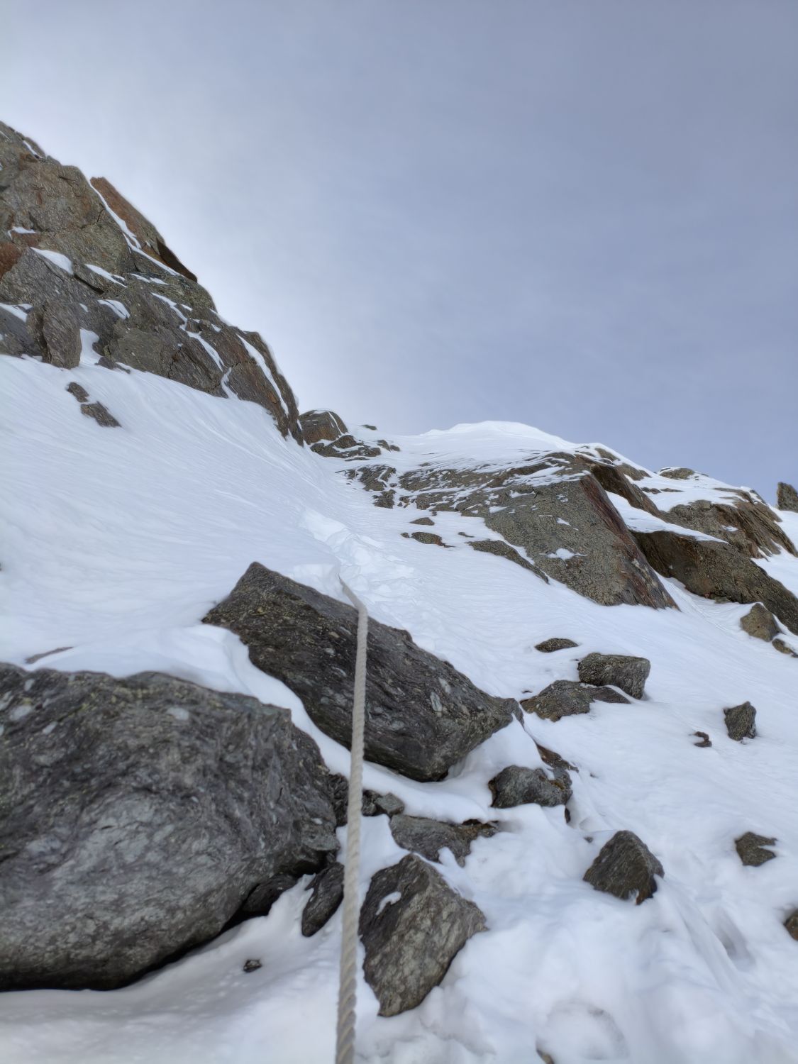 Nordseitig hat es (noch) keinen Firn, aber eine kompakte Schneedecke mit weicher Oberfläche. Teils sehr angenehm zu fahren, teils irgendwie verwaschen.