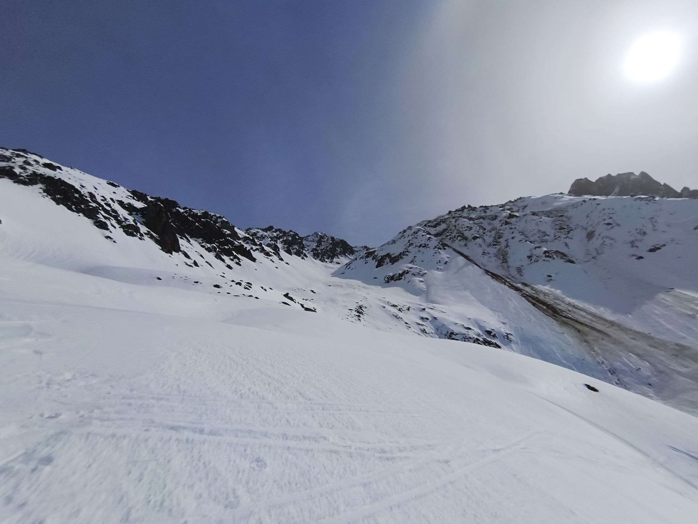 Östliche Eisentaler war sehr angenehm und weich zum abfahren im Gletscherbecken. Unten raus am frühen Nachmittag sehr firnig und zum Schluss ist ein weiterer großer Lawinenkegel zu überwinden. Mittags kein Genuss, Morgens sich sehr unangenehm.