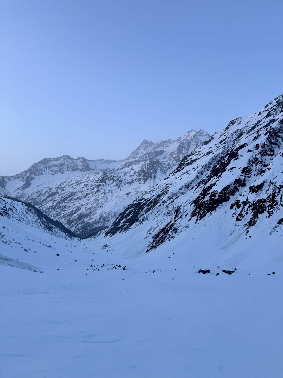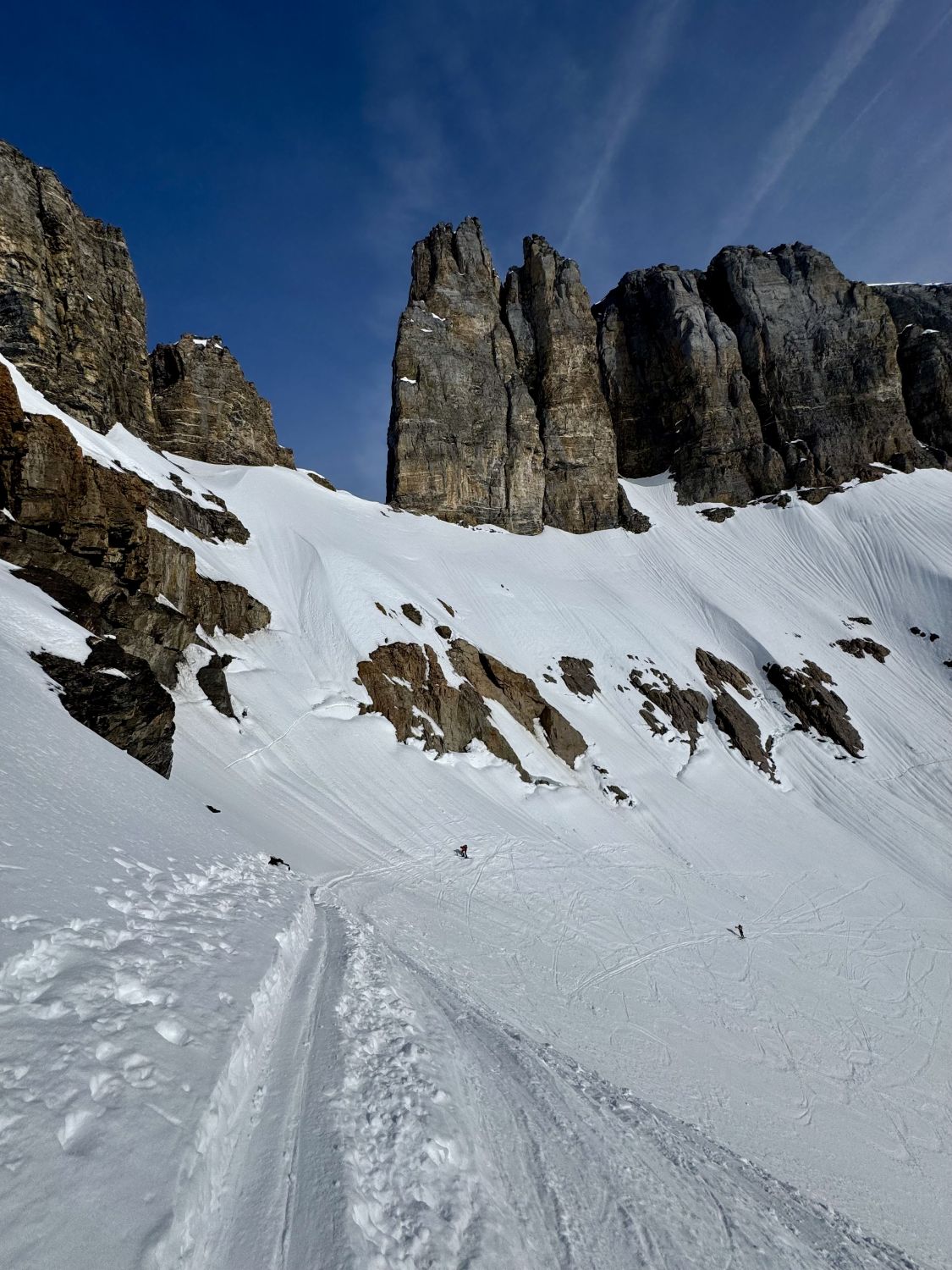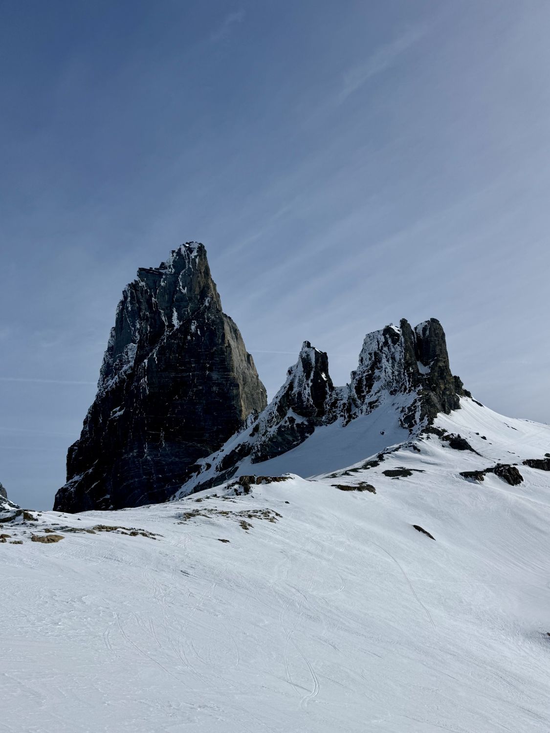 Wir haben noch das Wintertürmli mitgenommen und auf dem Bärenhorn vor der Abfahrt eine ausgedehnte Pause eingelegt, damit es für die Abfahrt genügend auffirnen konnte.