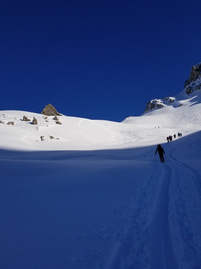 Die Verhältnisse waren heute mehrheitlich sehr gut. Man kann aktuell gut von ganz unten starten. Sie Südhänge sind sich bereits am Umwandeln und der Pulver wird entsprechend weniger. Je schattiger und nördlicher, je besser. Oben ca. 30-40cm unten ca. 10-20cm Pulverschnee.