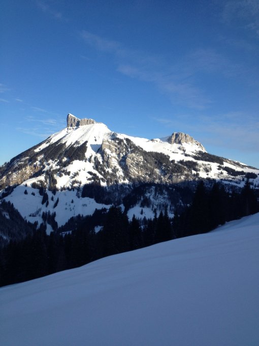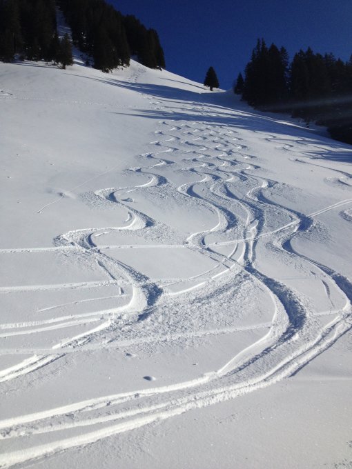 Morgens vor 9.00 Uhr Temp. -12°, gefühlt bitterkalt. Da die Tour mehrheitlich im Schatten liegt war der Schnee pulvrig leicht von oben bis unten (ca 15cm) mit einer hervorragenden Unterlage. Habe am Schnierenhörnli noch nie so gute Schneeverhältnisse angetroffen. mehr als ausgezeichnet.