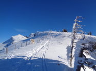 Und diese hielt heute was sie von weitem versprach. Herrliche Pulverschwünge hinab zur Bärfalle. Der etwas mühsame Gegenanstieg mit auffellen und so, unterbricht leider die Abfahrt über die weiteren Hänge hinab zum P. Der letztze Hange etwas holperig, da dürfte etwas nachgeschneit werden... Aber sonst eine überraschend skifahrerisch und landschaftlich herrliche Tour ohne das Gedränge wie manchmal an der Schratten.