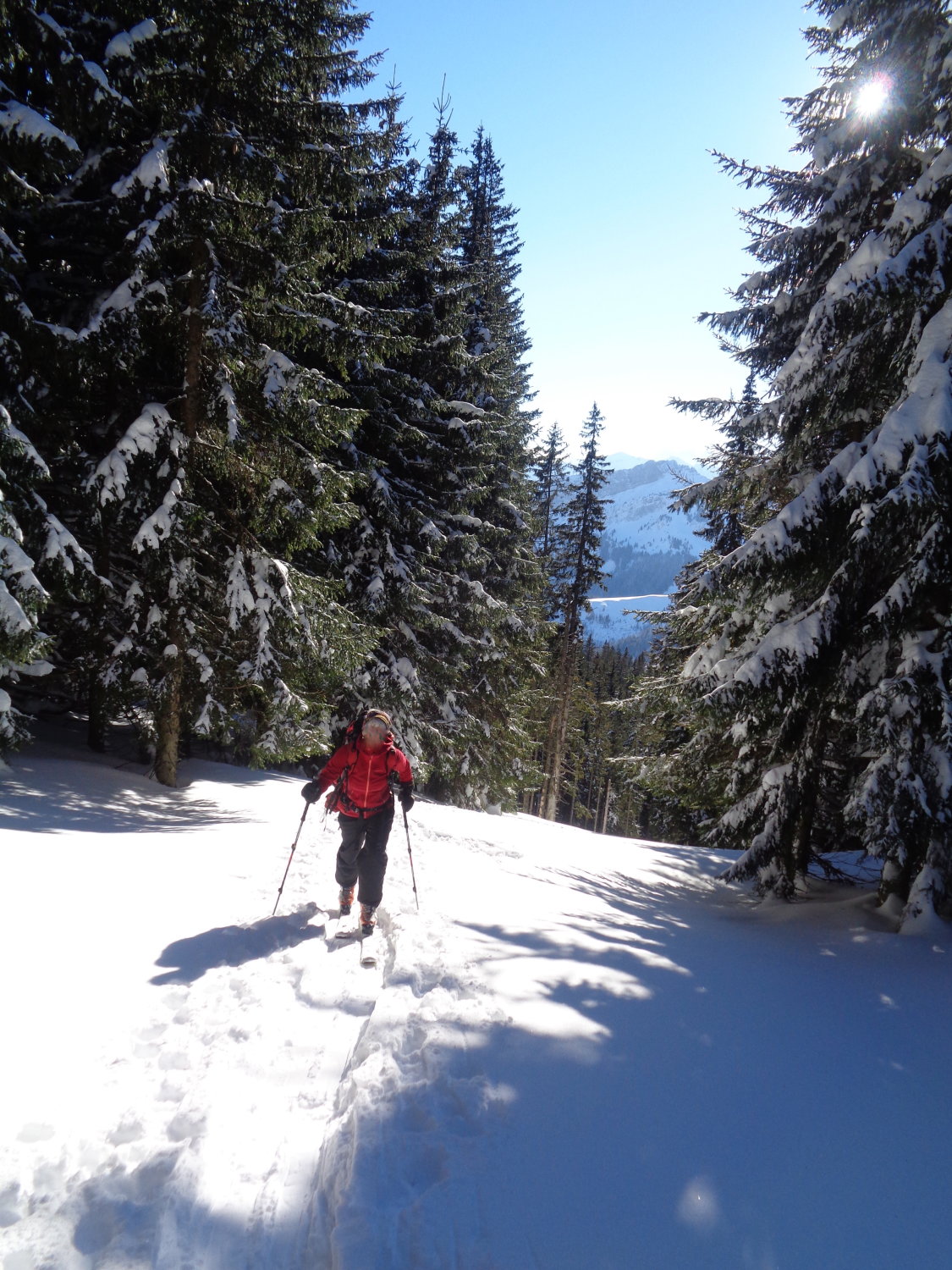 Das war eine gute Wahl, denn dieser Aufstieg führt durch wunderbaren Wald und schönes Gelände mit verheissungsvollen Blicken zum Beichle Gipfel mit der wunderbaren Abfahrflanke!
