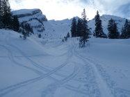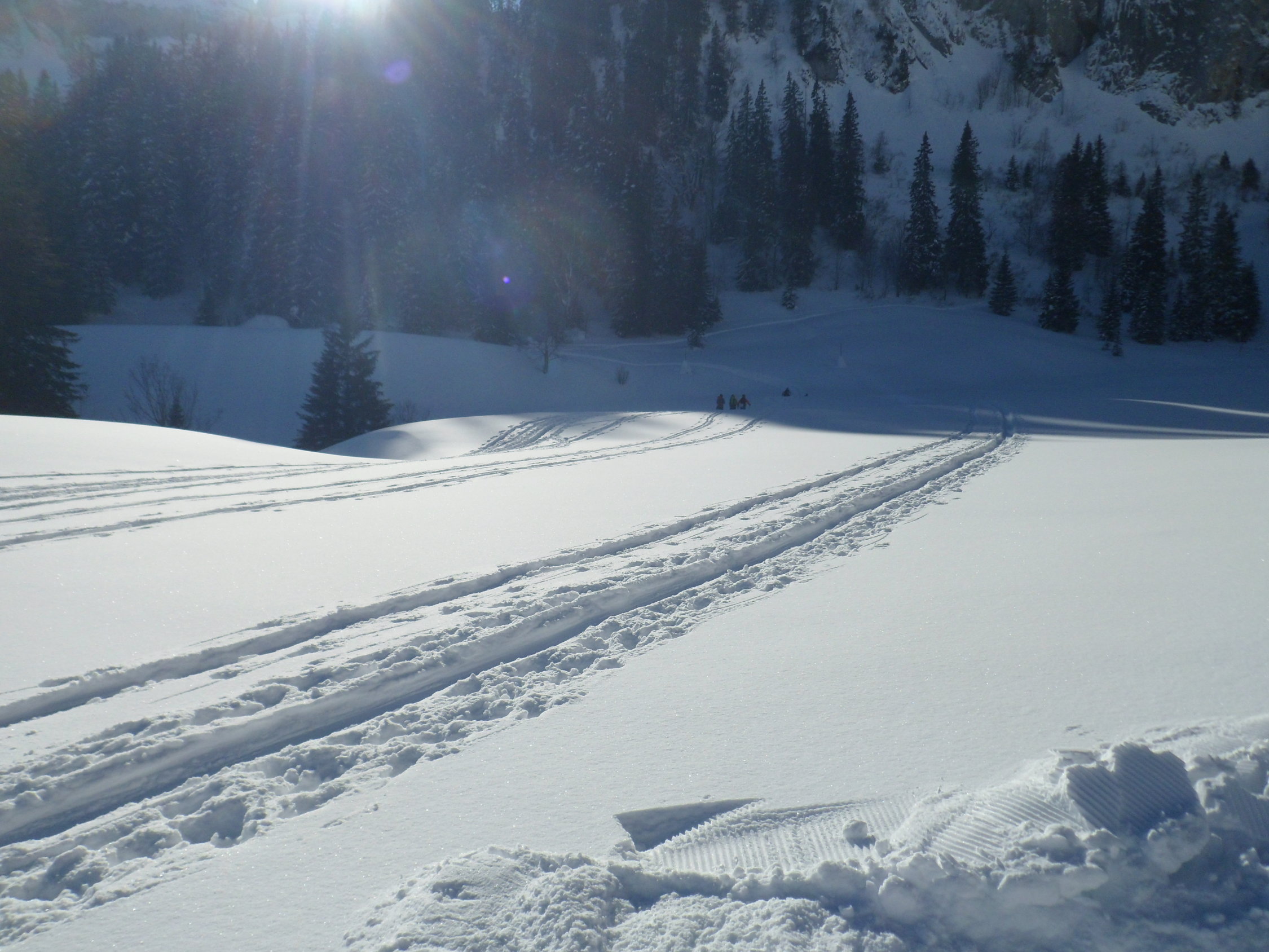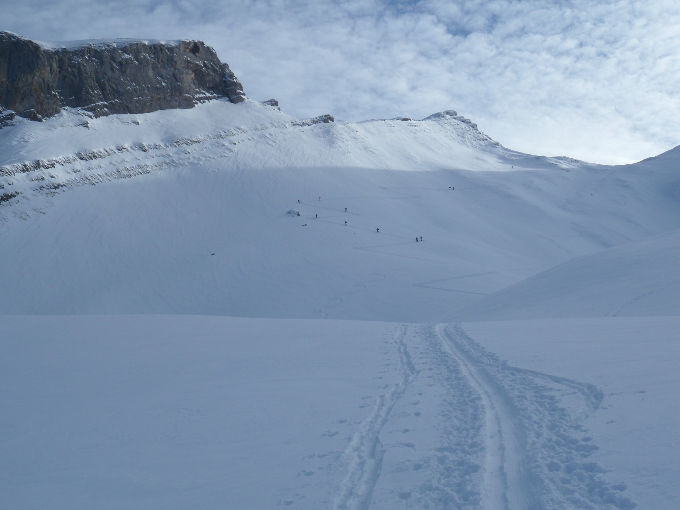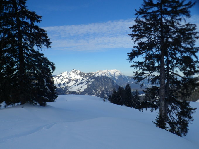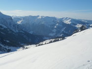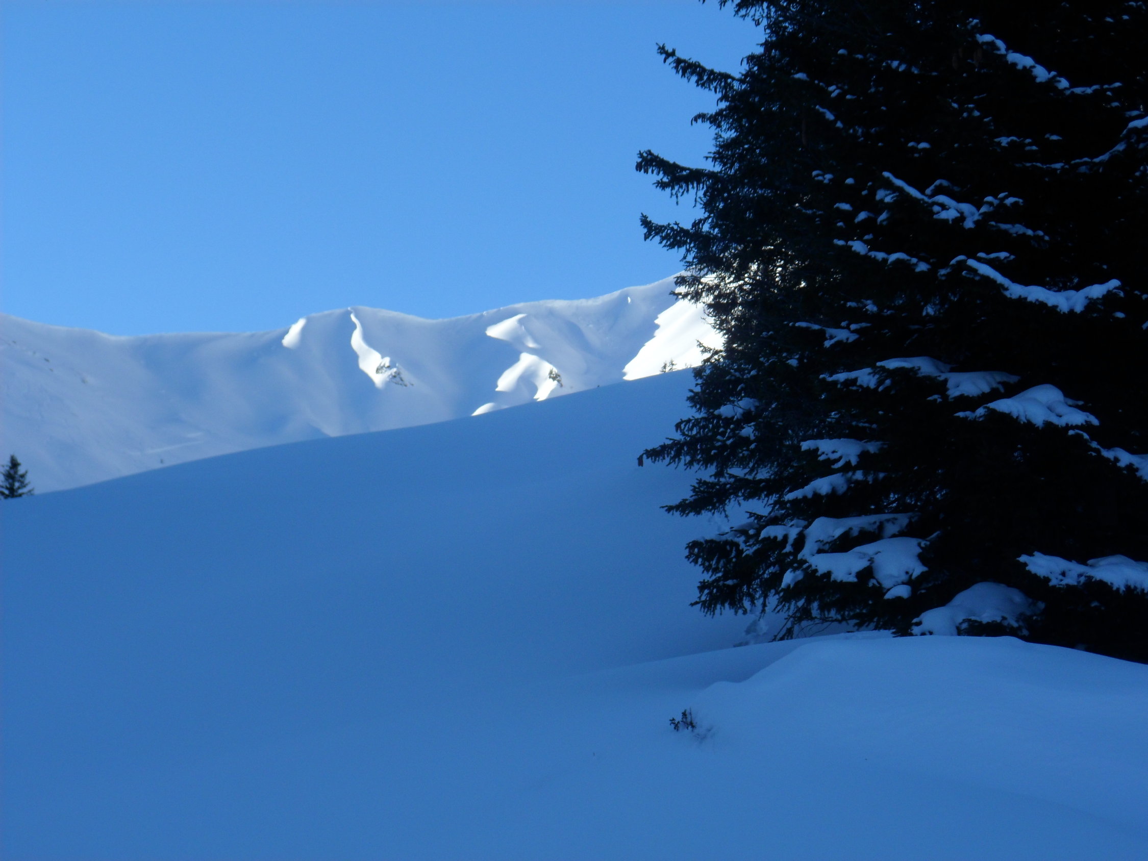 Wunderbarer Pulver fast überall. Einige glasige Stellen, dort wo die Sonne hinkommt. Gipfelaufbau idealer Trittschnee. Wir sind nach Gitschenen abgefahren und über die Sinsgauer Schonegg nach Obrrickenbach. Soviel Schnee hat es selten auf der Abfahrt nach Oberrickenbach. Grössere Lawine wurde vermutlich ausgelöst von Tourengängern, als wir auf dem Gipfel waren. Unterhalb Westgrat des Gipfelaubaus nach Norden (Abfahrtsroute auf Siktourenkarte gestrichelt). Es heisst dort ja nicht vergeblich Lauwistock.