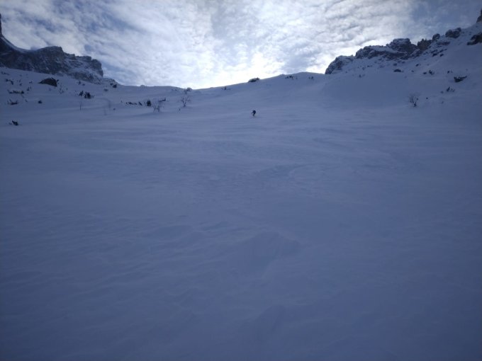 Genügend Schnee jedoch von lindauer Hütte bis botaloch alles nur windgepresst. Umkehr.